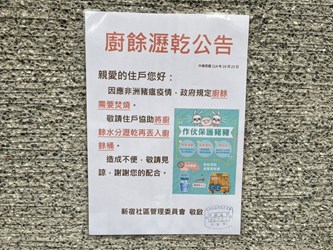 市府強調,類似案例已在多個行政區陸續出現,證明透過市府與社區、清運業者三方合作,廚餘政策轉型是可以被妥善管理、有效因應的,市府也將持續陪伴社區走過轉型期,確保環境品質與民眾生活不受影響。