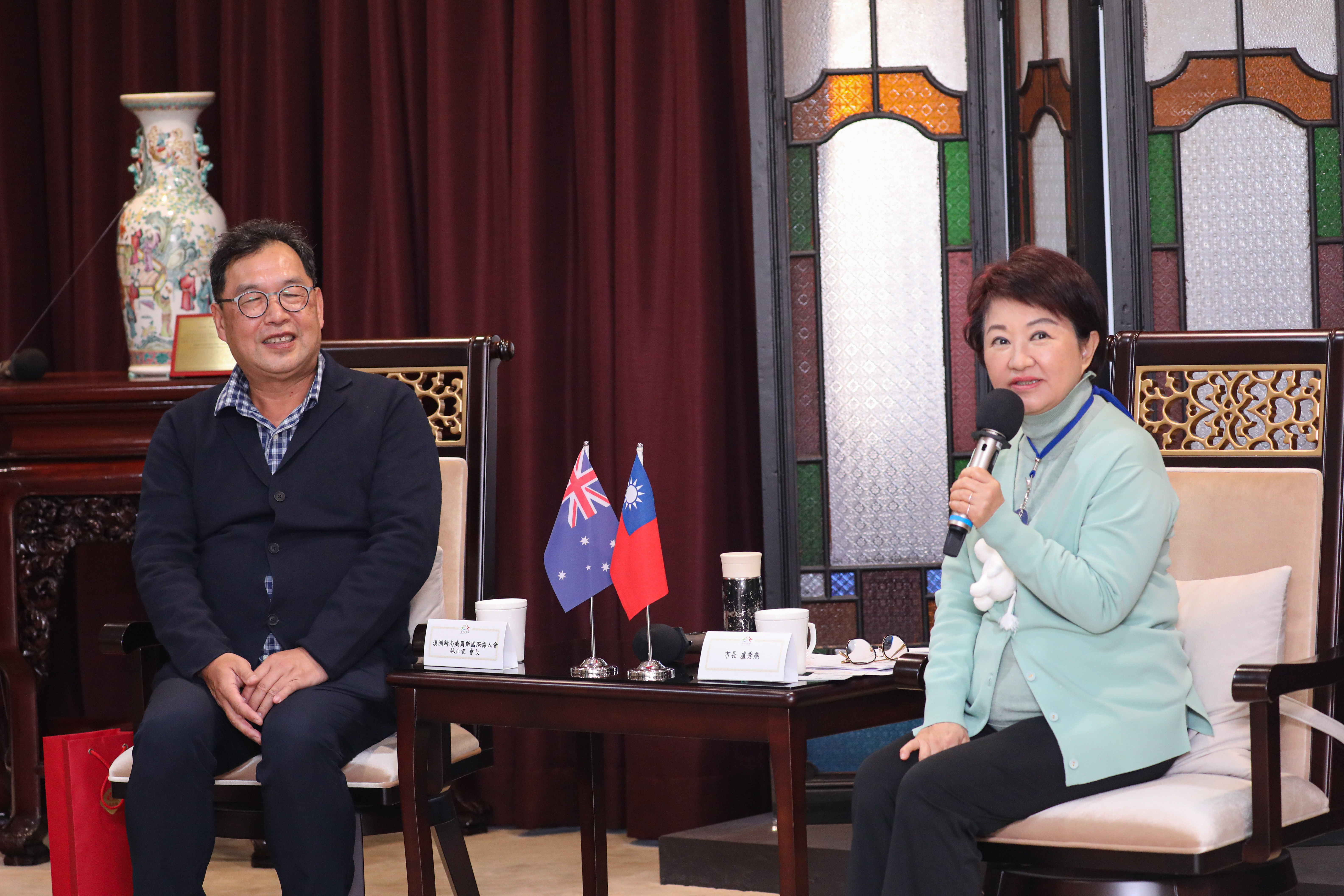 澳洲新南威爾斯國際傑人會長林正宜一行今(8)日拜會台中市政府,由市長盧秀燕親自接待。盧市長感謝僑界與鄉親在市府團隊至澳洲訪問期間的熱情接待與協助,讓行程圓滿順利;適逢農曆年將至,市府正積極籌備中台灣燈會,並持續推動文化建設與國際交流,邀請各界常回台中走走,祝福大家新年快樂、平安順心。