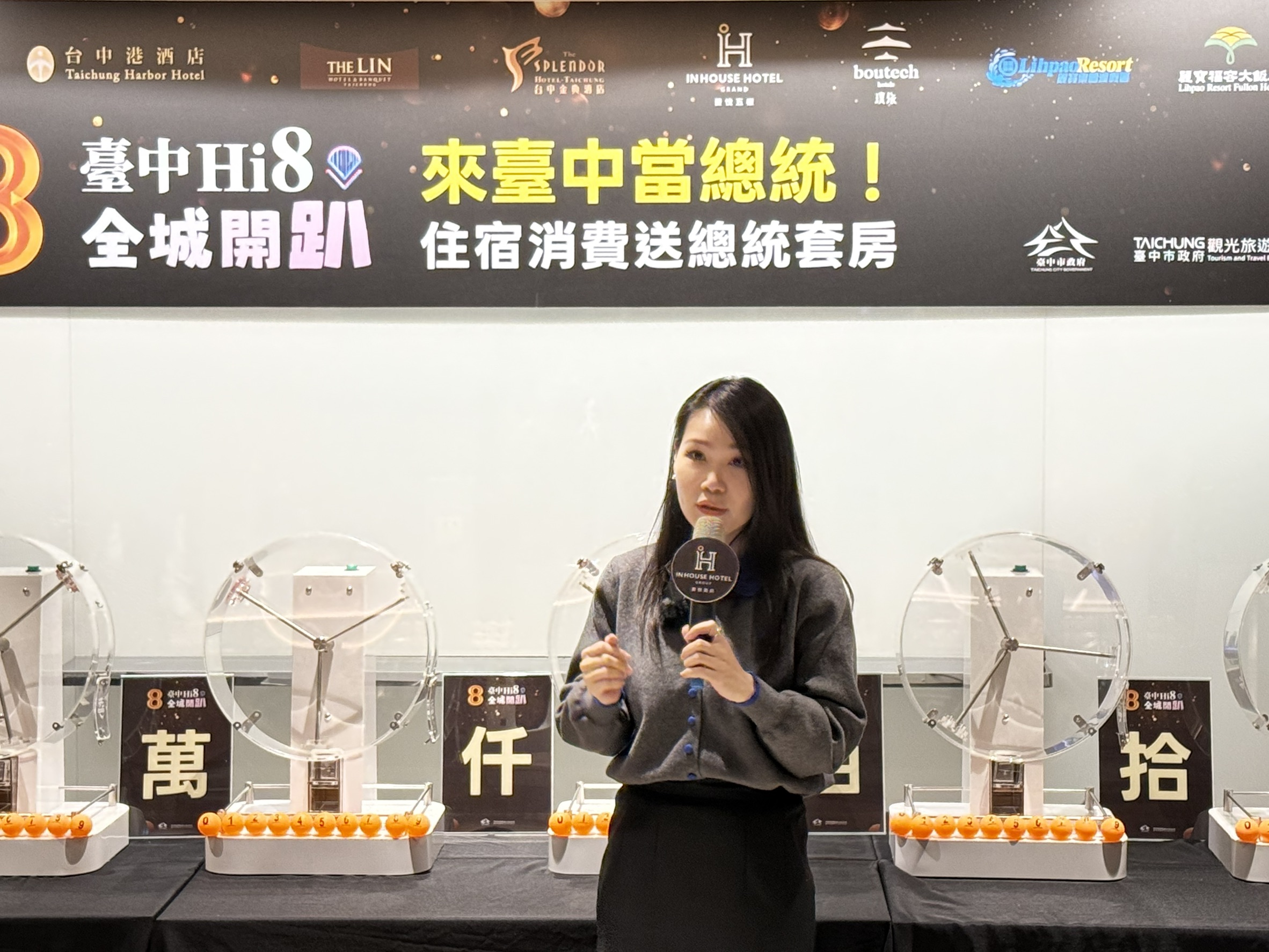 觀旅局補充,「來台中住宿消費送總統套房」系列活動後續將於1/28林酒店、2/9金典酒店接力辦理,並於觀旅局臉書粉絲專頁「大玩台中」直播,持續以多元行銷方式推廣台中觀光,歡迎民眾安排來台中旅遊住宿,享受優質旅宿服務,感受城市魅力。誠摯邀請全國民眾把握「台中Hi8全城開趴」期間規劃台中之旅,入住台中旅宿、登錄發票參加抽獎,為旅程增添更多期待與驚喜(台中嗨8 全城開趴活動官網:https://www.taichung.gov.tw/hi8 )。(1/18*10)*觀旅局