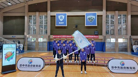 今日授旗,除教育局蔣局長外,台中市籃球委員會常委林益禎與家長會長呂蘭芬亦到場為選手加油打氣。