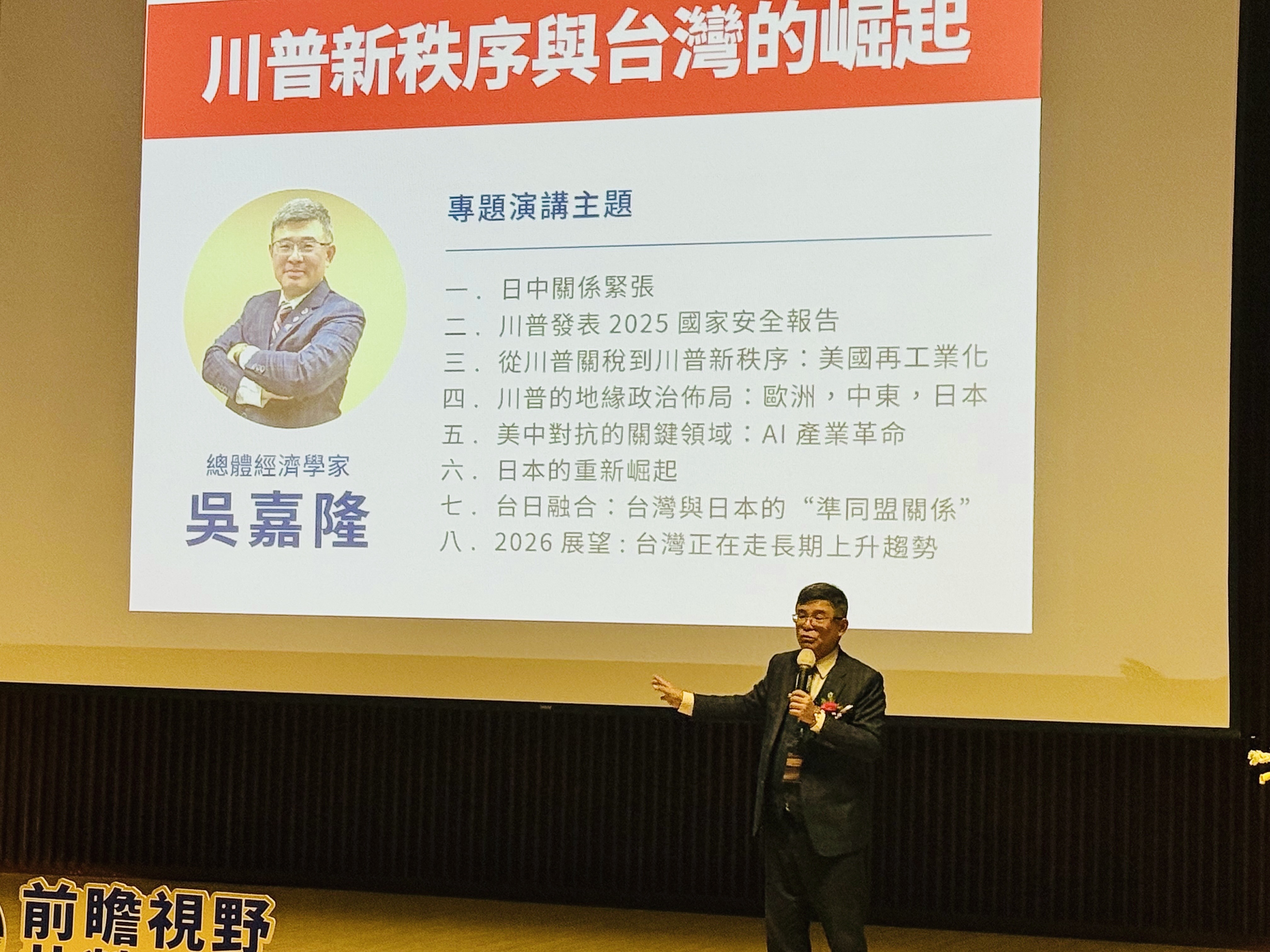 黃秘書長表示,此次論壇「前瞻視野,共榮發展」主軸,特別邀請總體經濟學家吳嘉隆及財信傳媒董事長謝金河,分別就「川普新秩序」下的國際局勢及房市展望進行專題演講。在全球經濟變動與政策推動的雙重影響下,唯有激盪創新思維、推動轉型升級,方能開創不動產業界的共榮新局。