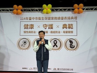 為感謝台中市醫療院所及衛生醫事相關單位長期投入公共衛生業務、共同守護市民健康,台中市政府衛生局今(28)日在市政府舉辦「114年度台中市衛生保健業務績優表揚典禮」,表揚176家醫療院所、藥局、公協會、基金會及照護機構等績優單位。典禮中共頒發1項感謝狀、5項獎項及1項認證標章,肯定各界在婦幼照護、癌症防治、慢性病防治、戒菸服務、預防及延緩失能,以及健康醫院推動等面向的卓越貢獻,攜手築起市民健康防線。