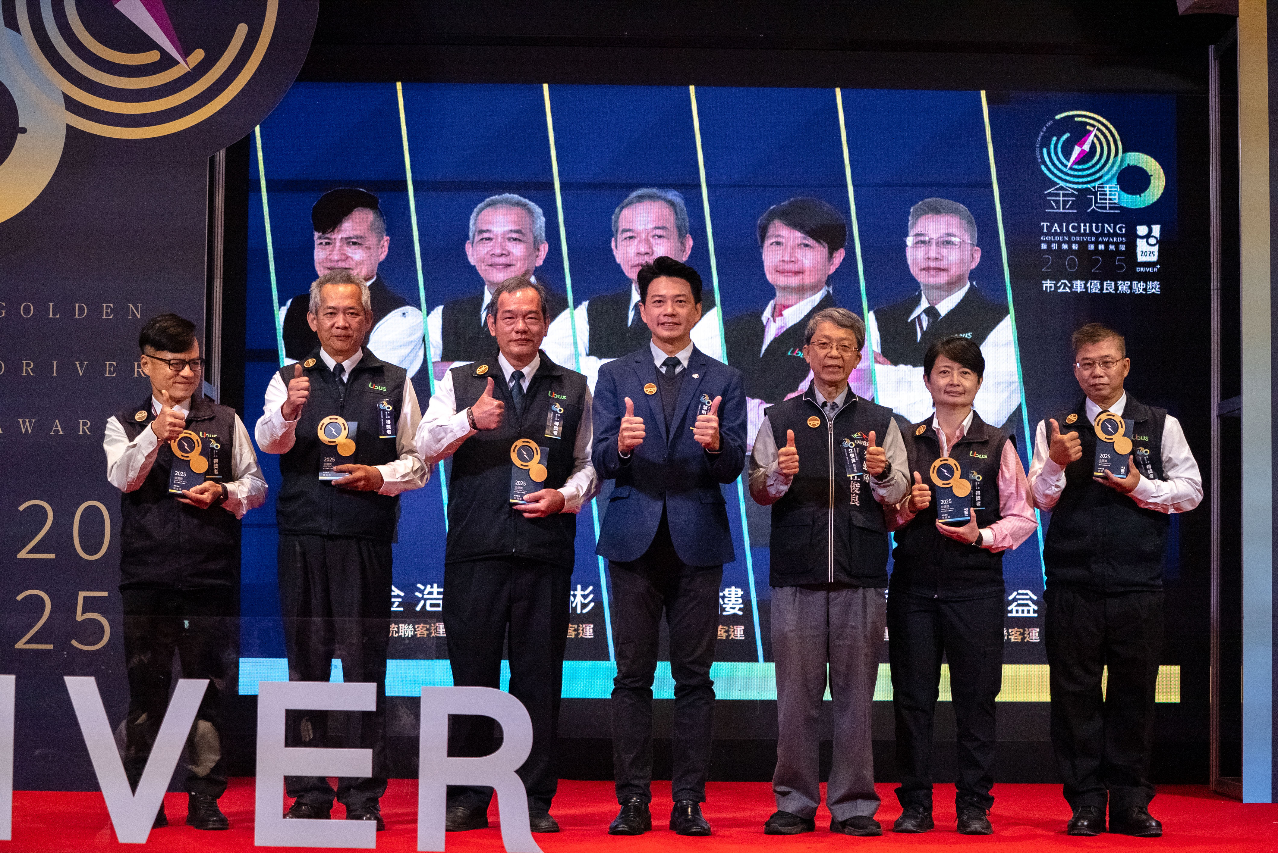 台中市政府今(8)日舉行「2025金運獎」頒獎典禮,表揚45位長期堅守第一線的優良公車駕駛長,感謝他們以專業與熱忱,守護市民每日通勤與生活。交通局長葉昭甫表示,台中市公車一年服務人次近8,000萬,今年金運獎以「指引無礙,運轉無限」為主軸,期許每一位駕駛長都能落實安全確認,成為乘客心中最安心、最可靠的城市英雄,陪伴市民完成每一趟旅程。