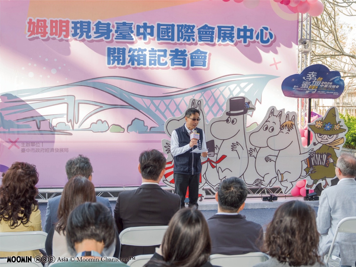經發局表示,台中國際會展中心自去年試營運以來話題人潮不斷,此次2026中台灣燈會與Rights and Brands Asia(RBA)旗下國際知名IP、經典長紅80年的「姆明一族(The Moomins)」跨界合作,結合「Moving on」 的諧音與姆明(Moomin)角色形象,以「幸福蜜馬 台中MOOMIN ON!」為主題打造幸福燈會,讓「姆明一族(The Moomins)」的可愛身影現身台中多處重要城市地標。