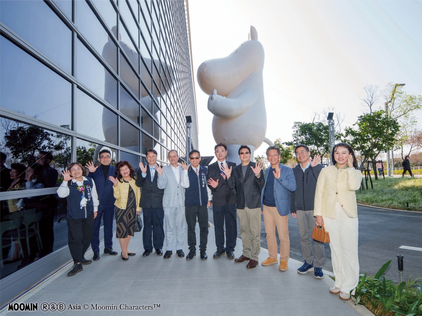 經發局長張峯源代表盧秀燕市長,與芬蘭商務辦事處副代表葉瑞及產業公會代表共同開箱。張局長表示,巨型姆明氣模最大特色,在於巧妙的視覺設計,氣模面朝會展中心建築外牆,透過大面積玻璃帷幕設計,民眾可於會展中心4樓室內空間,與「探頭張望」的姆明隔窗自拍合影,彷彿姆明正從窗外好奇地張望會展中心,創造室內外互動、遠近景結合的獨特拍照體驗,可望成為社群平台熱門打卡畫面,也讓會展中心瞬間多了許多童趣,變身最療癒的打卡新熱點。