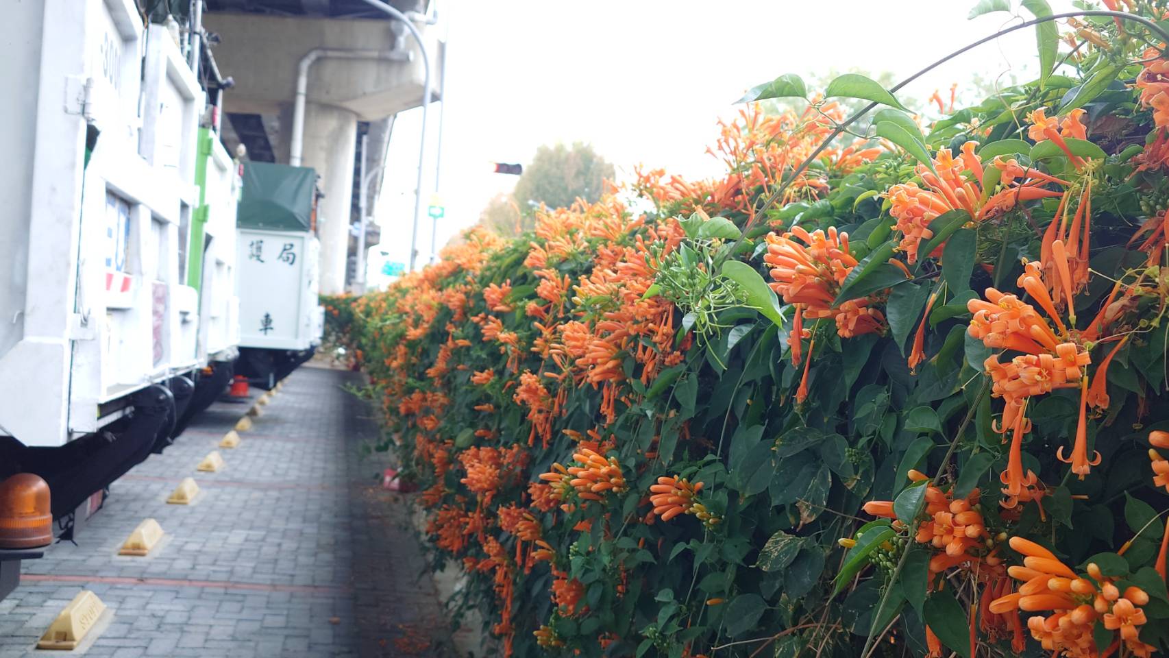 為迎接馬年新春,台中市政府環境保護局推動清潔隊部綠美化工程成果亮眼!位於中西區的清潔隊環保友善停車場及清淨園區外牆,近期炮仗花盛開,火紅花瀑沿牆垂落、隨風搖曳,為街道妝點濃厚年節氛圍,也吸引不少民眾駐足拍照,成為社區賞花新亮點。