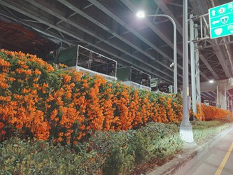 環保局另外指出,中平路清淨園區自112年底起亦沿外牆種植炮仗花,打造近900公尺花牆,成功改善鐵皮圍牆單調景觀,也拉近清潔隊與社區民眾距離。花期盛開時,吸引婚紗業者與里民前來拍照取景,成為地方熱門打卡點。班長卓秀春表示,園區植栽多由同仁於例行作業之餘輪流照料,並選用阿罩霧培養土及外埔綠能園區沼液作為肥分來源,實踐資源循環再利用;綠意覆蓋牆面後,不僅提升景觀質感,也讓同仁在忙碌工作中獲得片刻療癒。
