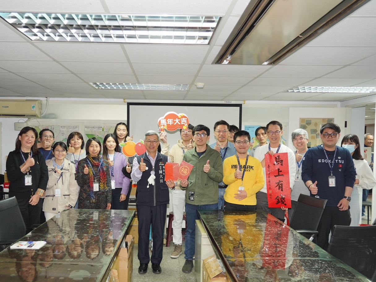 陳局長表示,建設團隊肩負道路養護、路燈維修、公園清潔與設施巡檢等任務,即使在春節連假期間,仍有許多人必須輪班留守、全天待命,確保市政服務順暢不中斷,這份責任感與使命感,是城市穩定運作的重要力量。他也代為傳達盧市長對同仁的關心與感謝,強調市府與基層夥伴是一個大家庭,因為有大家的付出,市民才能安心過好年。