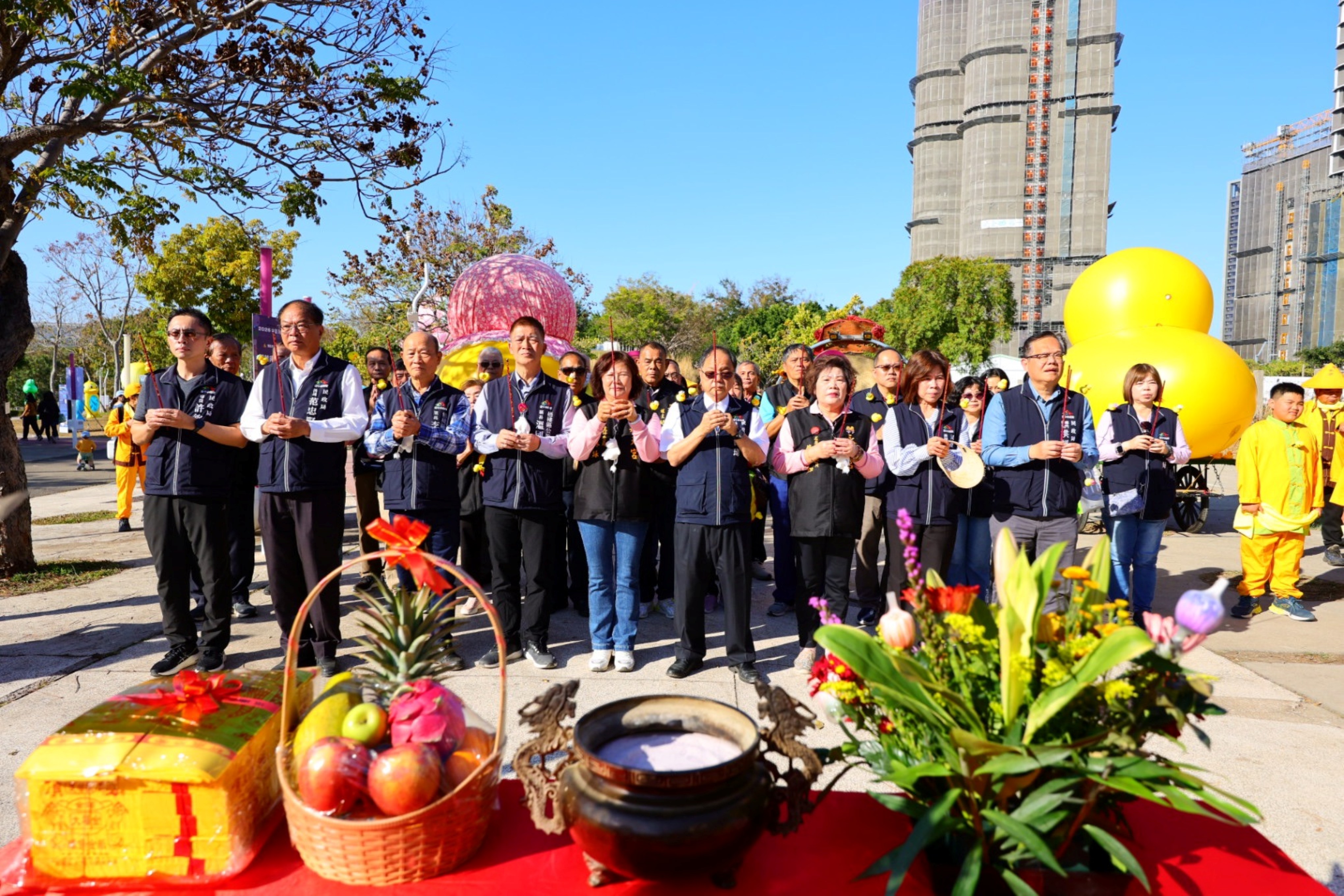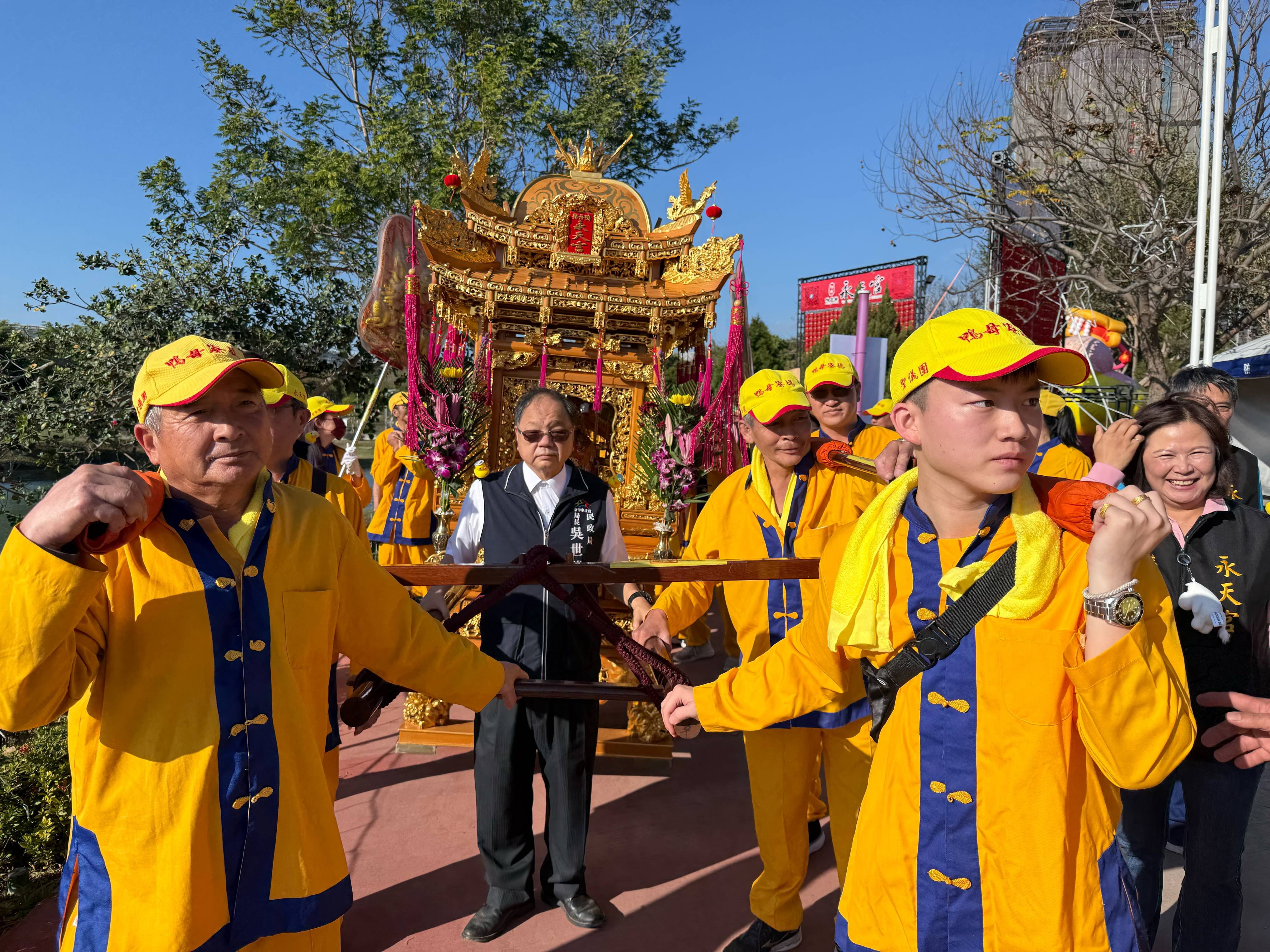 2026中台灣燈會今(15)晚盛大開幕,台中市政府民政局「幸福祈願村」燈區搶先掀起首波高潮,隆重恭迎梧棲鴨母寮永天宮「鴨母寮媽」首度駐駕中央公園,為燈會揭開祈福序幕。市府民政局長吳世瑋表示,幸福祈願村串聯山、海、屯、城四大指標宮廟,以創意花燈打造沉浸式祈福體驗,並感謝永天宮主委陳姝詠大力支持促成活動,也祈願媽祖慈悲庇佑燈會活動圓滿順利,新的一年國泰民安、風調雨順、市民平安幸福。