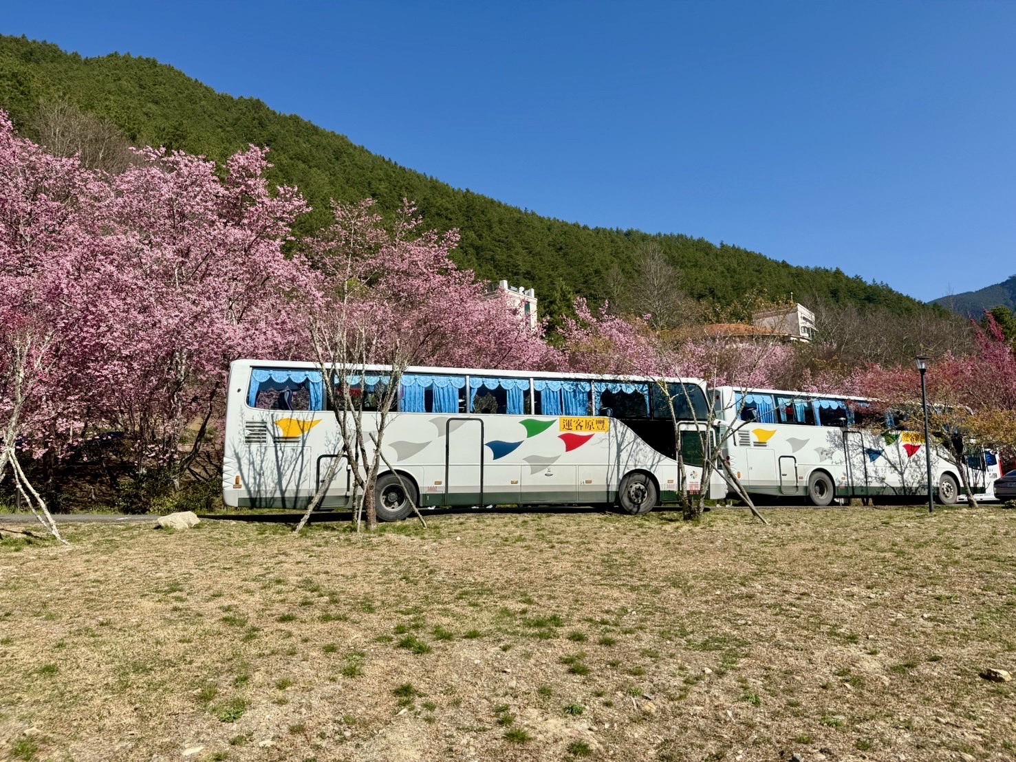 交通局長葉昭甫指出,「梨山-武陵農場」賞櫻專車一天規劃3個班次,採原班次來回,從梨山發車的時間為上午7時、9時30分及下午1時;自武陵農場出發的班次為中午11時30分、下午2時30分及5時30分,另預售票最晚需於「搭車日前2天」完成預訂,請民眾留意日期與時間。若錯過預售票時間,仍可於每日下午4時至6時,前往梨山遊客中心購買隔日之剩餘票券,每人限購6張,現場售完為止 。