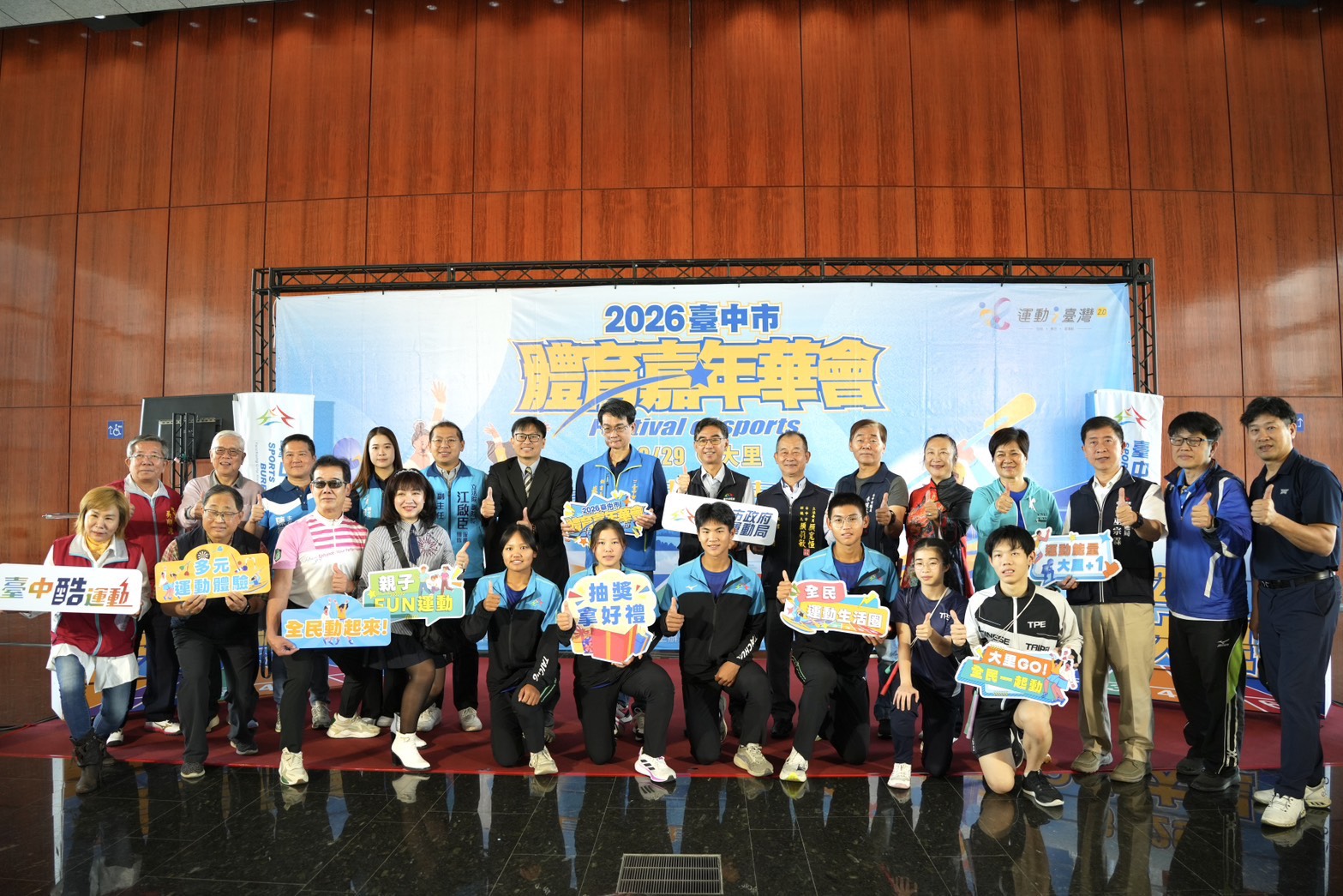 台中市年度運動盛事「台中市體育嘉年華會」將於3月29日熱鬧登場!嘉年華由台中市政府運動局攜手台中市議會及台中市體育總會共同辦理,每年吸引超過萬人參與,已成為地方重大體育活動之一。市府今(19)日於台中市議會4樓舉行記者會,特別邀請大里在地划船選手、全國運銀牌得主張子謙、廖奕凱、李佳惠與莊詠涵出席,並邀請花式跳繩選手高沐臣與白家菱現場演出,透過專業運動員示範與分享,傳達「以競技帶動全民運動」理念,展現基層運動人才培育成果。