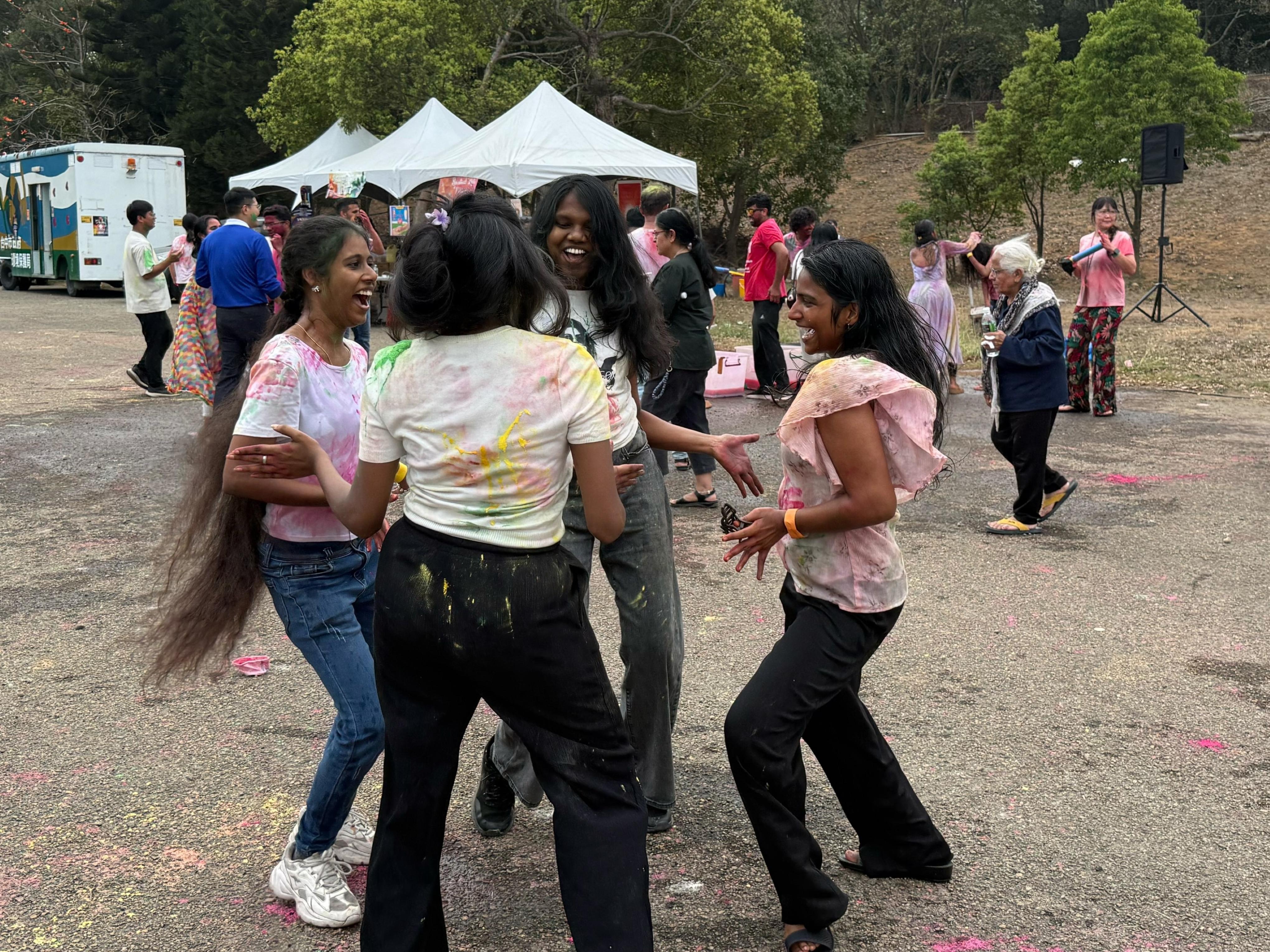 活動現場氣氛熱烈,民眾在白陽山360度開闊景觀中盡情揮灑色彩,透過顏料水球與水槍互相傳遞祝福,在繽紛水霧中感受春日活力。現場邀請印度DJ帶來寶萊塢電音舞曲,帶動全場熱情舞動,並提供印度拉茶及蔬食烤餅等特色美食,讓參與民眾在歡樂互動中也能品味道地異國風味。