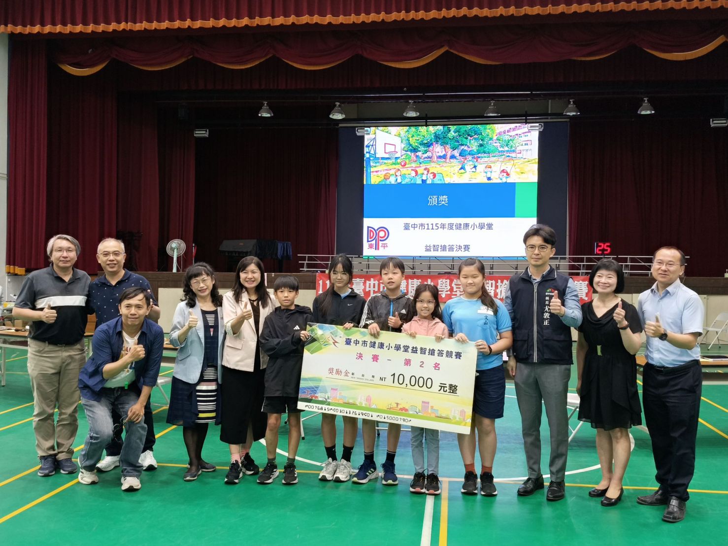 台中市校園健康促進盛事之一「115年度健康小學堂益智搶答競賽」全市總決賽,今(30)日上午於南屯區大新國小熱鬧登場,歷經中、屯、山、海四大區分區初賽的搶答激戰後,選拔出14所國小菁英隊伍進入今天的決賽展開終極對決,現場搶答戰況激烈,最終由南屯區大墩國小憑藉紮實的健康促進素養與驚人反應能力,拿下冠軍寶座,獲封115年度「健康知識王」!