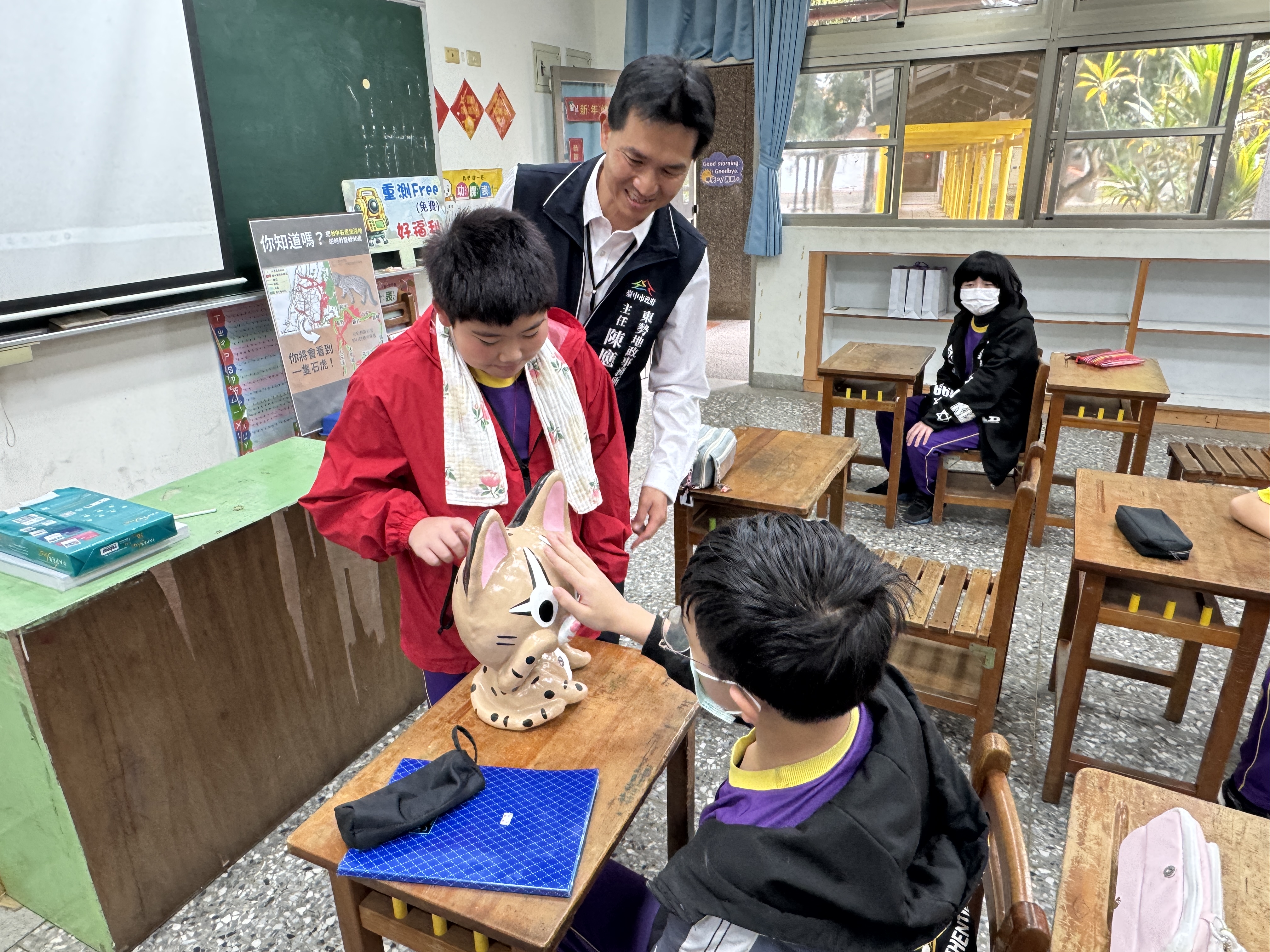 台中市政府東勢地政事務所在兒童節前夕,前往目前進行地籍圖重測區內之新社區大南國小、東勢幼兒園等校園與社區里鄰聯誼會,透過自製AI動漫影片寓意石虎保育,與體驗重測儀器的生動活潑方式,讓學童認識地籍圖重測作法與重要性,將產權觀念向下扎根。
