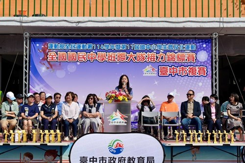 台中市政府教育局專門委員劉姵君表示,市長盧秀燕相當重視學校體育發展,鼓勵學生從小培養運動興趣並提升體適能。教育局每年推動多元普及化運動競賽,透過班級共同參與的方式,讓學生在運動中培養團隊合作精神,建立規律運動的健康生活習慣。