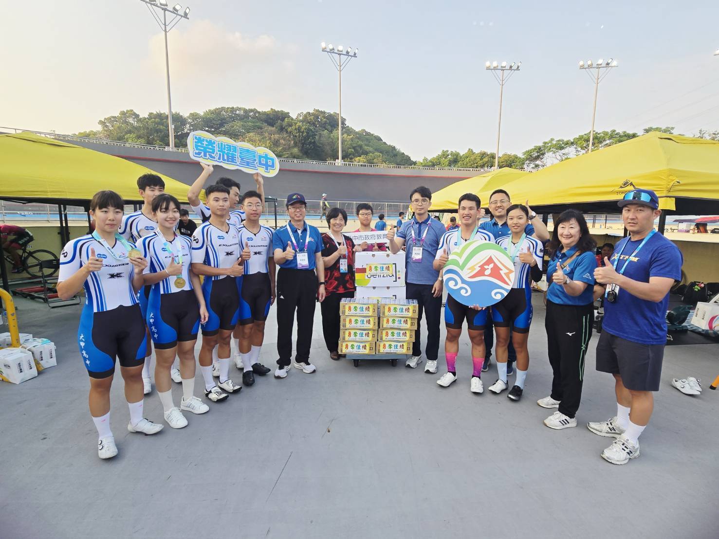 捷報!「115年全中運提前賽」如火如荼展開,截至昨(15)日,台中市參賽選手已摘下26金29銀32銅的好成績,其中「自由車場地賽」更奪得15面金牌,總金牌數暫列全國第一!台中市政府教育局副局長郭明洲到場歡迎全國選手到台中,同時也為參賽學校的選手們加油打氣、致贈運動補給品,期盼台中選手們今年繼續摘金奪冠。