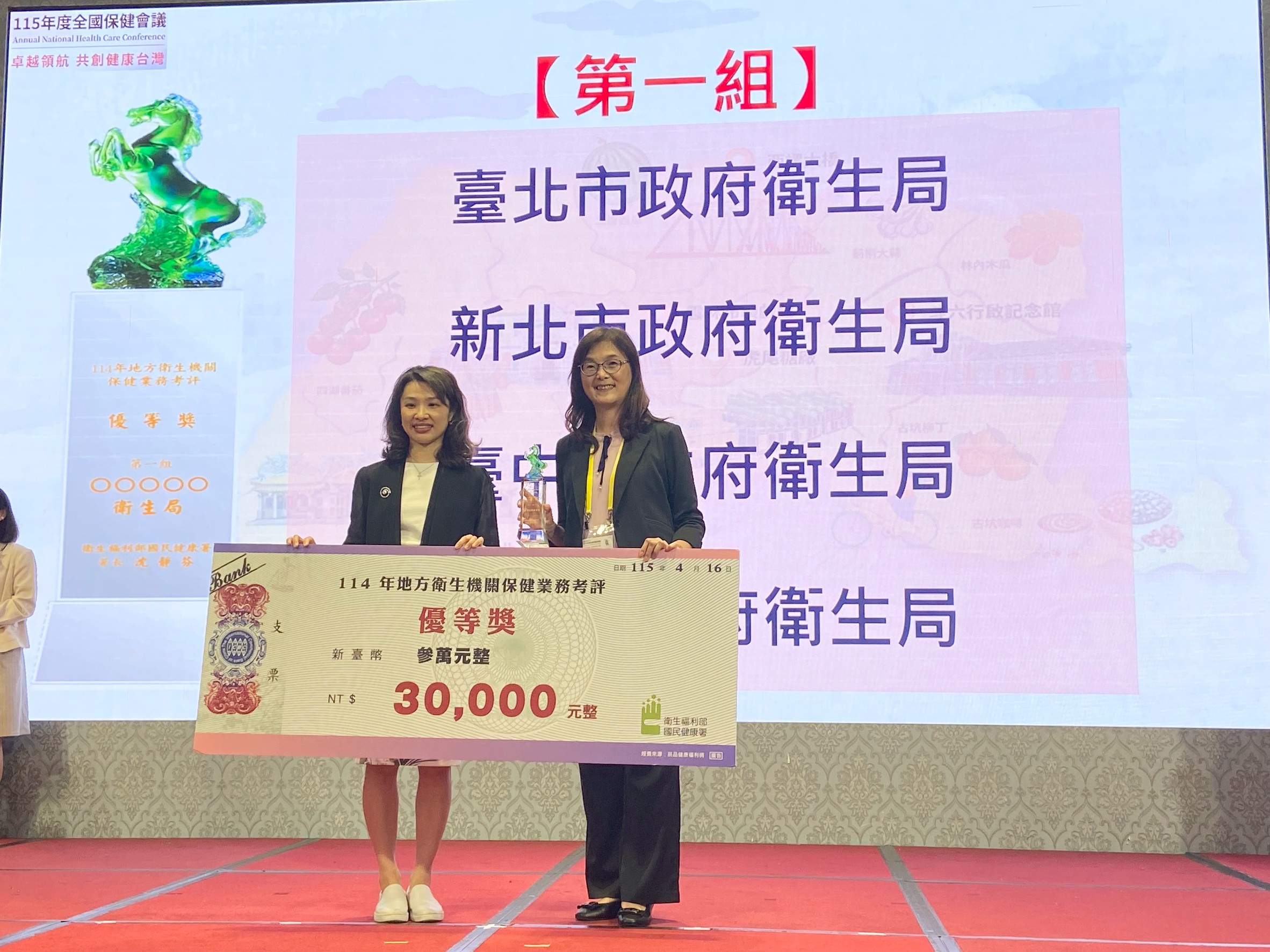 衛生福利部國民健康署今(16)日於雲林舉辦「115年度全國保健會議」,表揚114年度保健業務考評績優單位。台中市在全國22縣市激烈競爭中表現亮眼,不僅榮獲保健類總成績全國第一,更獲頒保健業務類第一組優等獎,整體表現再創高峰。