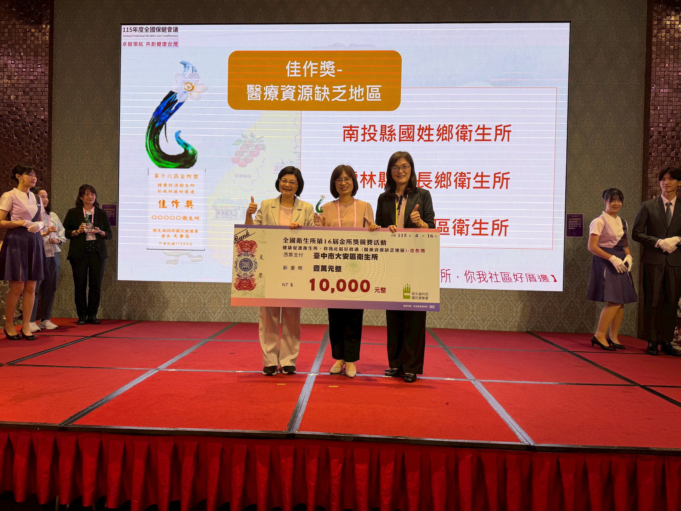 衛生局指出,台中市於癌症篩檢、菸害防制、婦幼健康、成人預防保健、慢性病防治、代謝症候群防治、肝炎防治及健康促進等八大面向表現卓越,勇奪多項第一名,展現跨領域整合與精準健康政策推動成效。另外,衛生局輔導大里區、大安區及和平區梨山衛生所參加第16屆金所獎「健康促進衛生所 你我社區好厝邊」亦榮獲優等獎及佳作獎佳績。