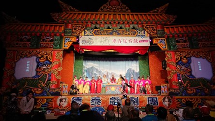 昨日中央客委會所舉辦的「收冬戲」全台巡演首場演出,由德泰戲劇團打頭陣,上演感人的戲碼《天下父母心》,演出前也以表達祈願的「扮仙」揭開序幕,為民眾賜福;市府客委會主委劉宏基、市議員張芬郁、李天生及草湖太子宮副主委李清忠、台中市大屯客家協會理事長黃子勇等人到場共襄盛舉。