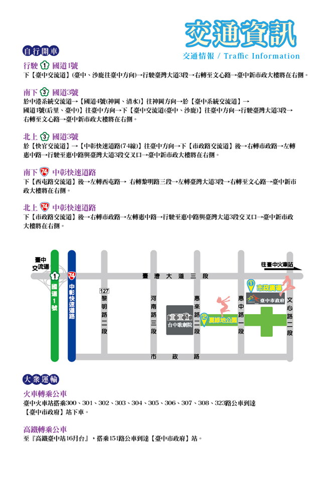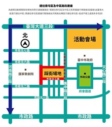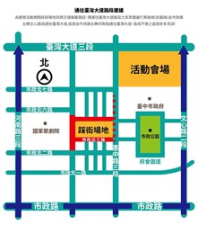 活動期間除了在台灣大道市府廣場有定點舞台表演、特色市集及美食攤位等,17日晚間6時由「前夜祭」隆重開場,將有18隊日本及台灣舞團輪番上陣,精彩表演要讓民眾目不轉睛。18日下午2時,「移動踩舞」表演在夏綠地公園周邊及台中國家歌劇院前展演,將街道化身為舞台,舞者將邊走邊跳,近距離與民眾演出互動。19日市府廣場前則有多場踩舞教學與交流活動,歡迎喜歡舞蹈的民眾踴躍參加。更多活動相關訊息請上2017台中國際踩舞祭官網 ( http://www.2017tcdanceparade.com/  )查詢,或是上FB粉絲專頁搜尋「2017台中國際踩舞祭」;詳細交管資訊http://bit.ly/2zJuCzJ
