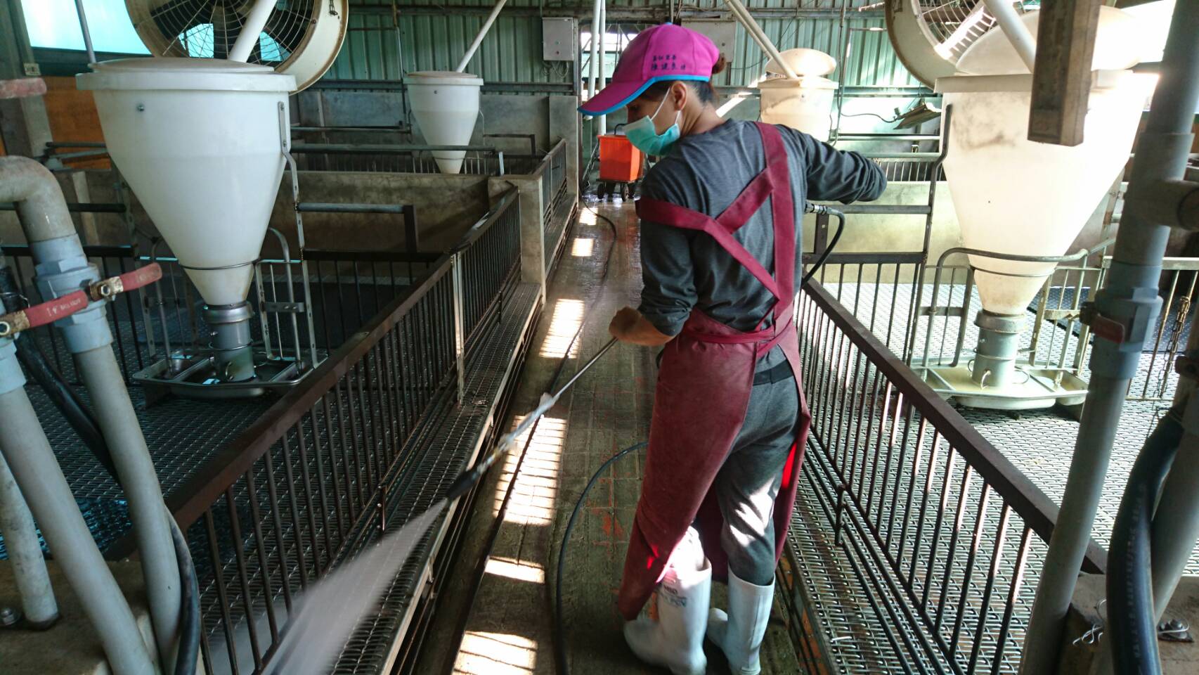 針對畜牧場環境,王文通一家也很認真清理,除了最基本的汙水、沼氣處理外,還使用除臭噴霧,並每周消毒至少一次;若遇到豬隻移場,不僅消毒,還會用高壓殺菌,接著再將場地清空2個禮拜,確保沒有藏菌再讓豬隻入場,有效控制環境,豬隻健康掛保證。