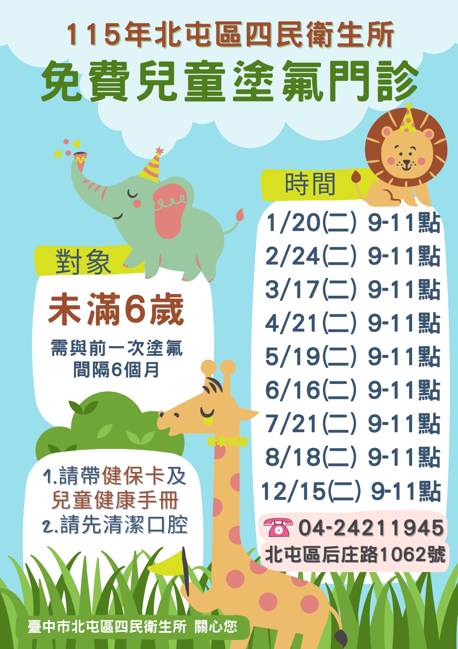 - 地點:臺中市北屯區四民衛生所(后庄路1062號)