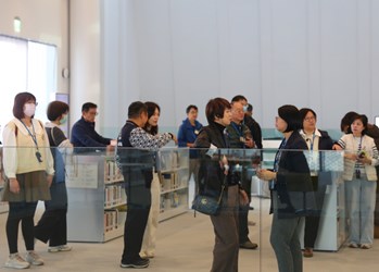 台中市政府由副秘書長張大春代表盧市長出席接待,新北市政府團隊則由副秘書長龔雅雯率領文化局及圖書館團隊,走訪由普立茲克建築獎得主妹島和世、西澤立衛設計的純白建築。一踏入館內,光影穿透、視野開闊的空間氛圍留下深刻印象,紛紛讚嘆「綠美圖真的會呼吸」。尤其對於圖書館與美術館空間自然交融,市民能在同一場域中閱讀、看展並欣賞建築之美,給予高度評價。