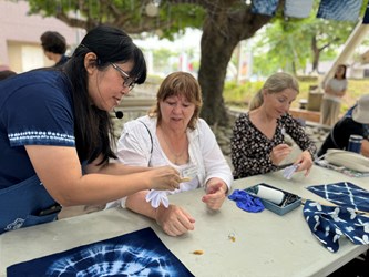 長年投入藍染推廣的志工隊副隊長吳典玲分享,在一次次教學與交流中,深刻感受到工藝連結人心的力量,藉由一塊藍布成為跨文化的共同語言,讓國際訪客理解台灣文化的細膩與溫度。隊長朱存琦表示,志工隊多年來持續精進技藝與教學能力,培育出多位專業藍染講師,不僅拓展志工的藝術職涯,也為台中培養穩定的文化人才庫,展現市府推動文化永續發展的具體成果。