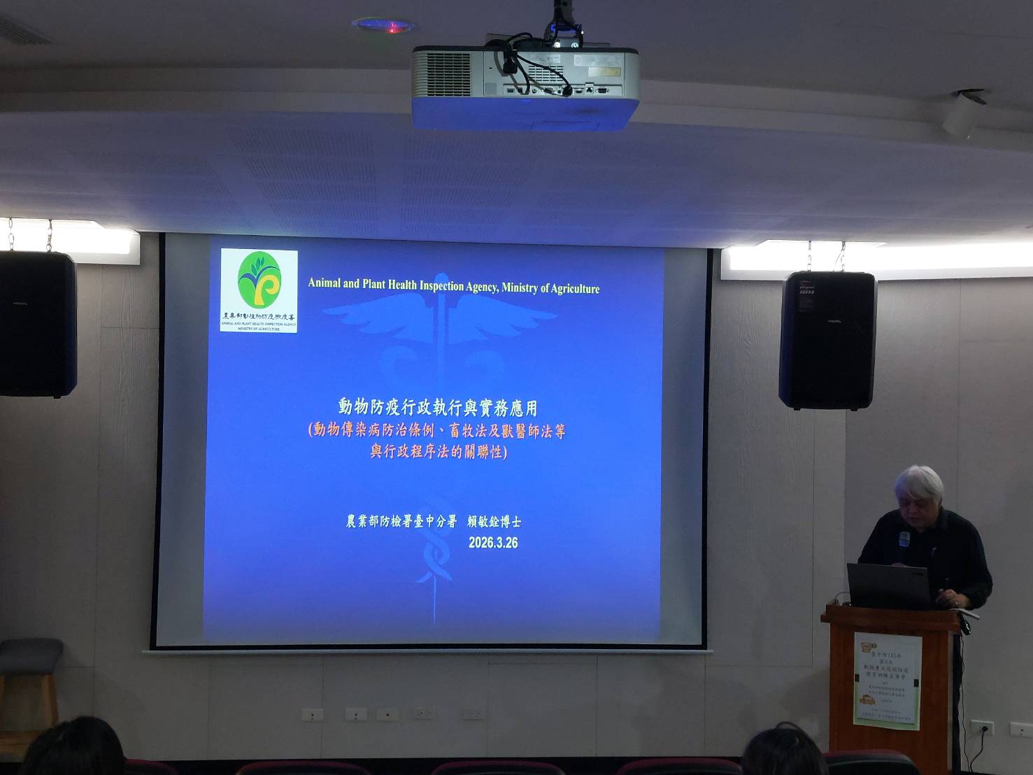 為提升本市動物防疫人員專業知能,臺中市動物保護防疫處於今(26)日辦理「115年第3次動物重大疫病防疫教育訓練宣導會」,邀請農業部動植物防疫檢疫署臺中分署賴副分署長擔任講師,講授「動物防疫行政執行與實務應用」,強化第一線動物防疫人員專業知能與實務應變能力;本次訓練由動保處及各區公所防疫人員共同參與。