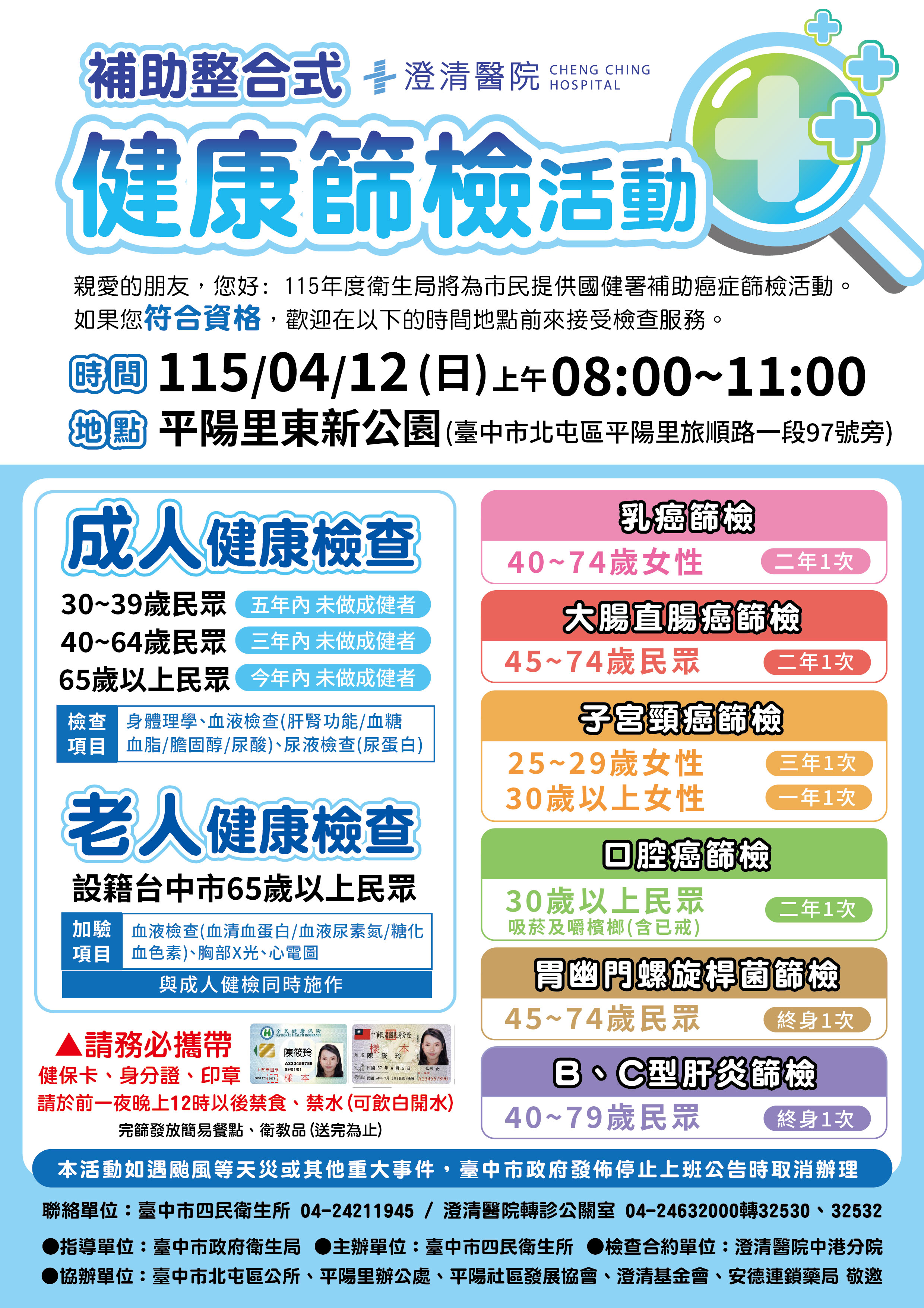 115年4月12日上午(週日)整合性預防保健篩檢活動
