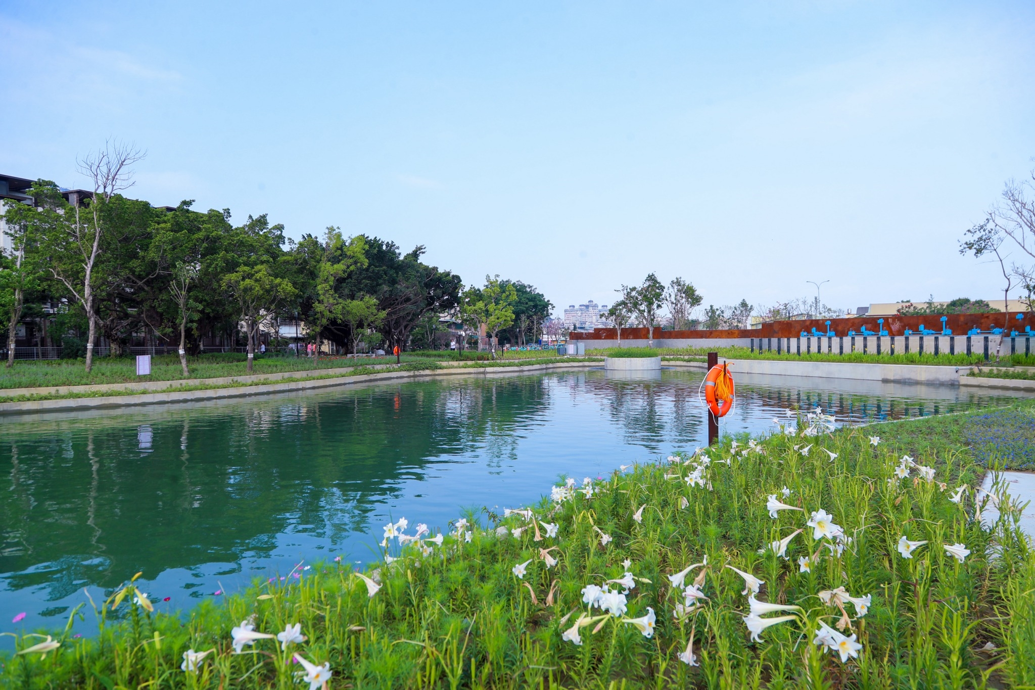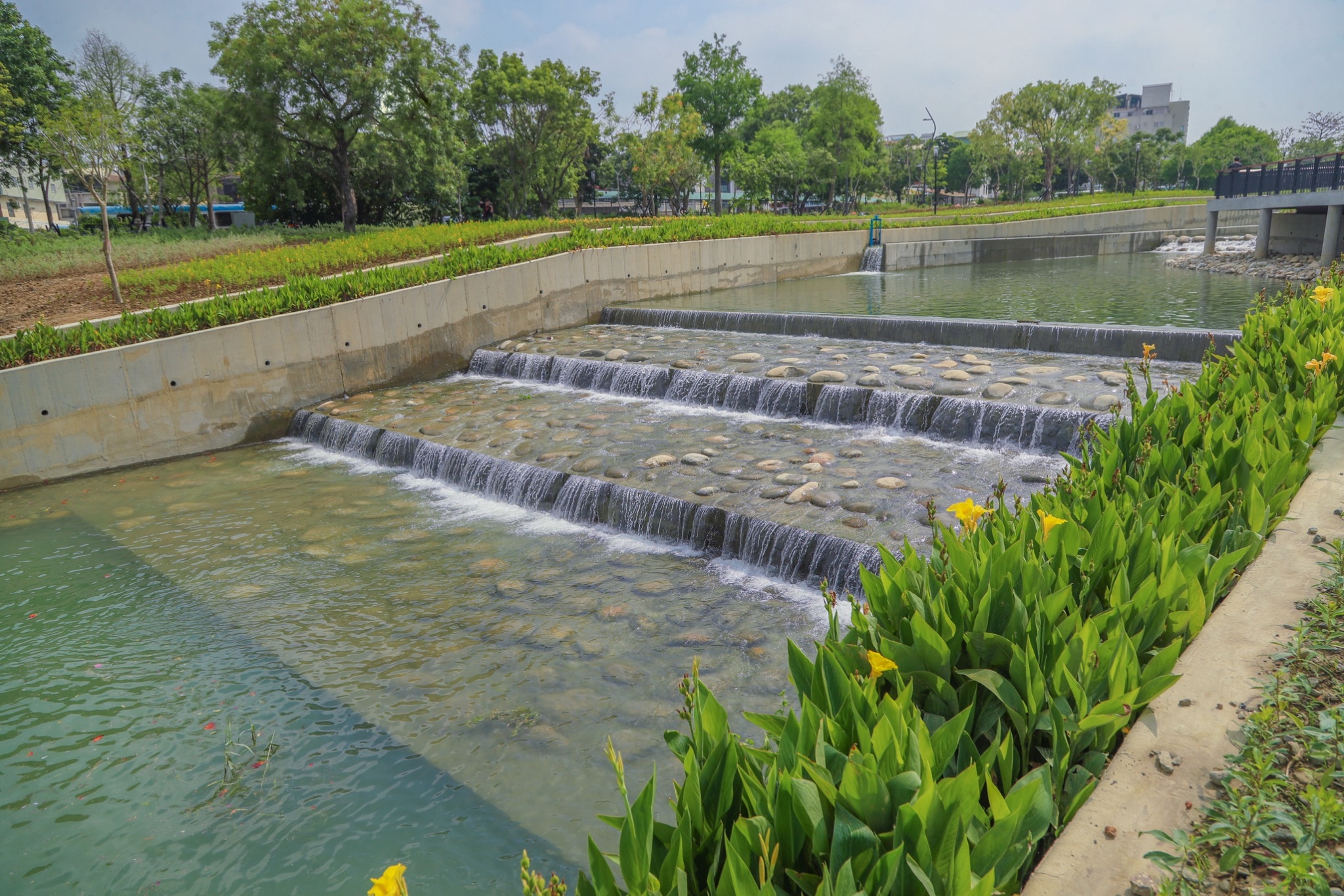 水利局指出,葫蘆墩園區水質現地處理設施每日可處理3,000噸的截流污水,其中100噸的中水作為園區內沖廁用水、植栽澆灌等再利用,剩餘的水則補充河川基流量,涵養水源,扮演著調節溫度、灌溉農田和蘊養生命的角色。