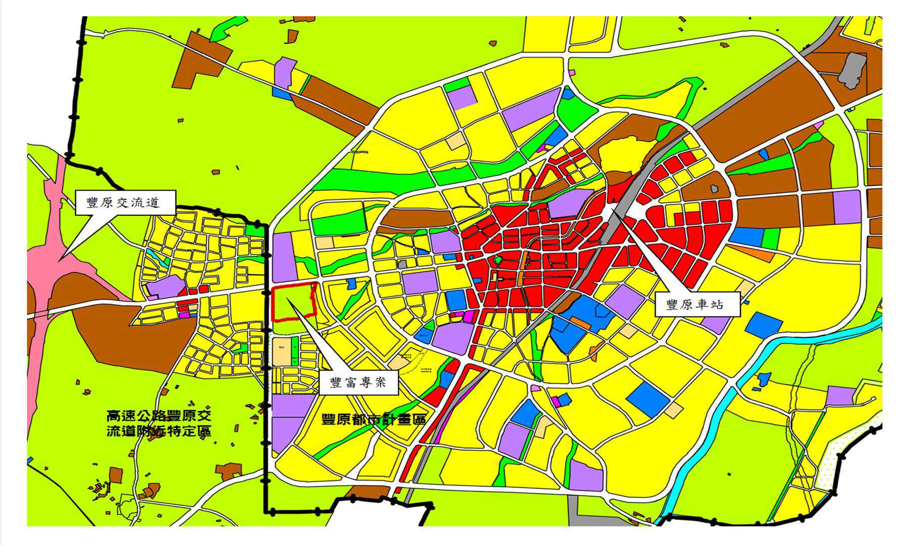 都發局說明,豐富專案係為因應中央「愛台十二建設」之「產業創新走廊計畫」,開發主要導入金融後臺服務產業進駐,包括金融企業辦公、人才培訓中心、金融客服中心、資訊服務業、大專商學金融教學設施及附屬商業設施等,並設置面積0.58公頃的多功能運動中心,可帶動地方就業、生活、休閒,型塑豐原新門戶。