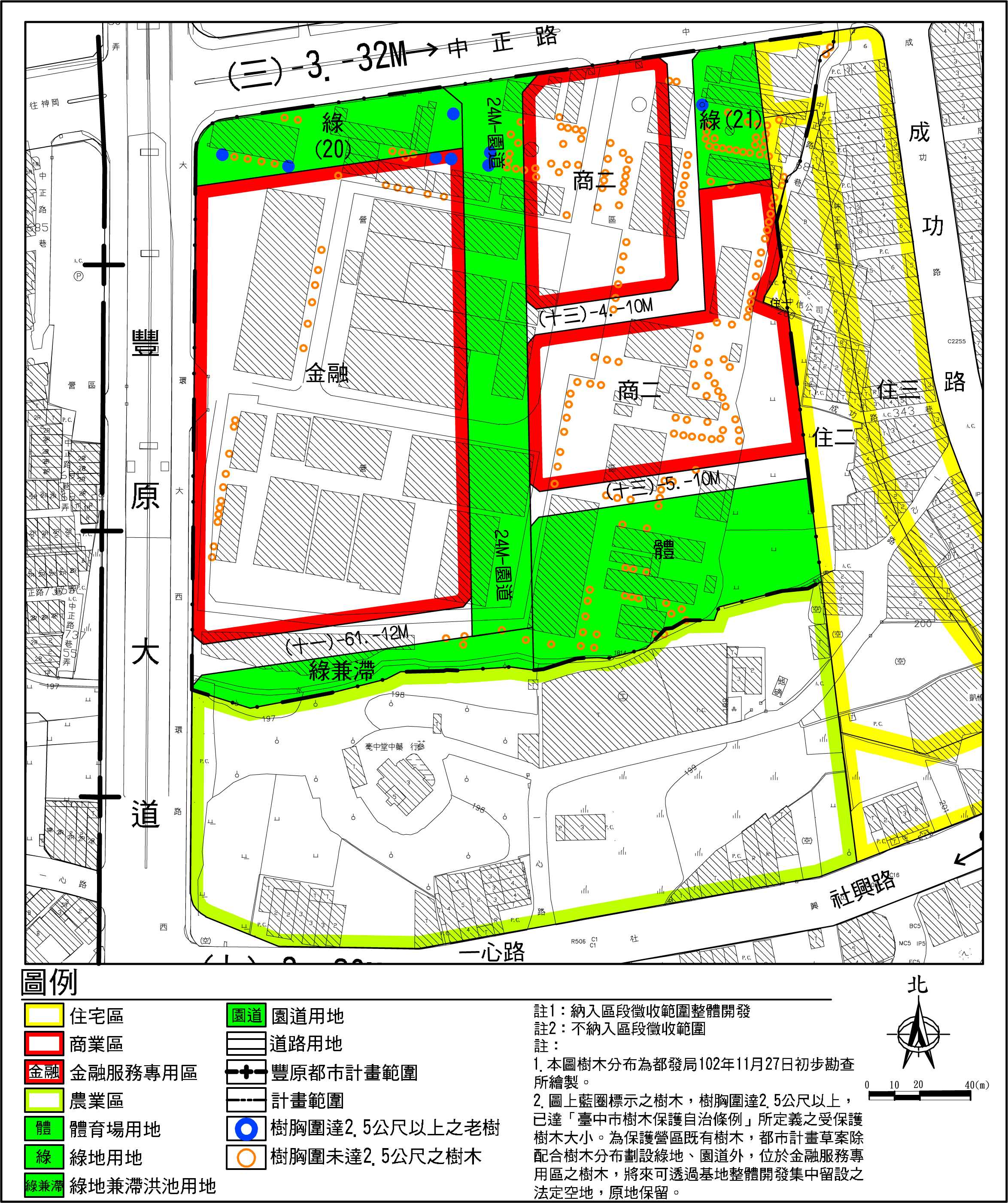 都發局表示,市府相當重視原有甲保廠營區內老樹,區內所有達老樹標準的樹木都將原地保留。104年豐富專案即將邁入土地開發階段,未來將扮演經濟發展火車頭的角色,創造2,500個就業機會,豐原地區的發展指日可待。(10/29*12)