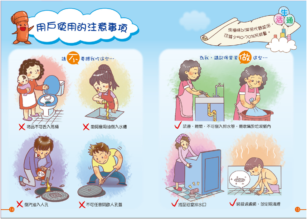 污水下水道系統是一個健全都市不可或缺的基礎工程,因此污水用戶接管後的管理維護也顯得特別重要,只要簡單的幾個動作,就能維護接管系統,發揮污水下水道系統最大效能,有效改善環境衛生,提升居家生活品質。(11/25*16)