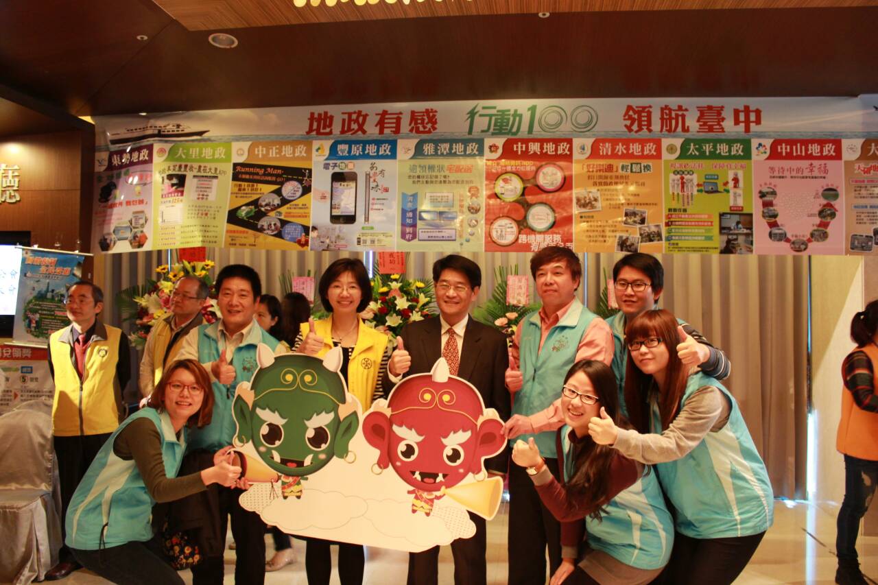 張局長說,市府地政局與11所地政事務所,簡政便民推動良好,已連續4年榮獲內政部評比全國優等;今天更藉大會的召開,宣導臺中地政服務措施,將臺中市「跨所服務 零距離」等14項「行動100」措施,一次向各位展現地政的行動力,也期盼之後能提供市民更好的服務。