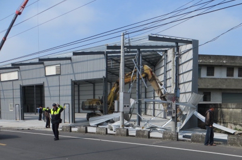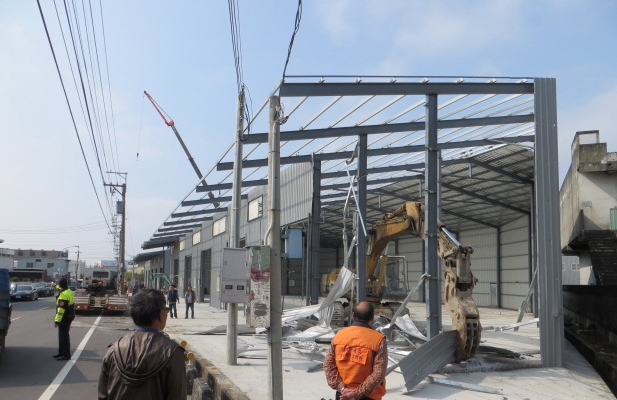 都發局表示,林市長上任後十分重視違章工廠公安問題及施工中違章建築問題,並宣示自今(104)年1月1日後新增違章工廠即報即拆,絕不寬貸,以維護公共安全。市府原訂今(4)日上午執行拆除業務,業者收到通知後,自昨天起自行僱工,以大型機具拆除違章建築,並向市府切結於14日內須拆除完畢,恢復農地原貌。(2/4*12)