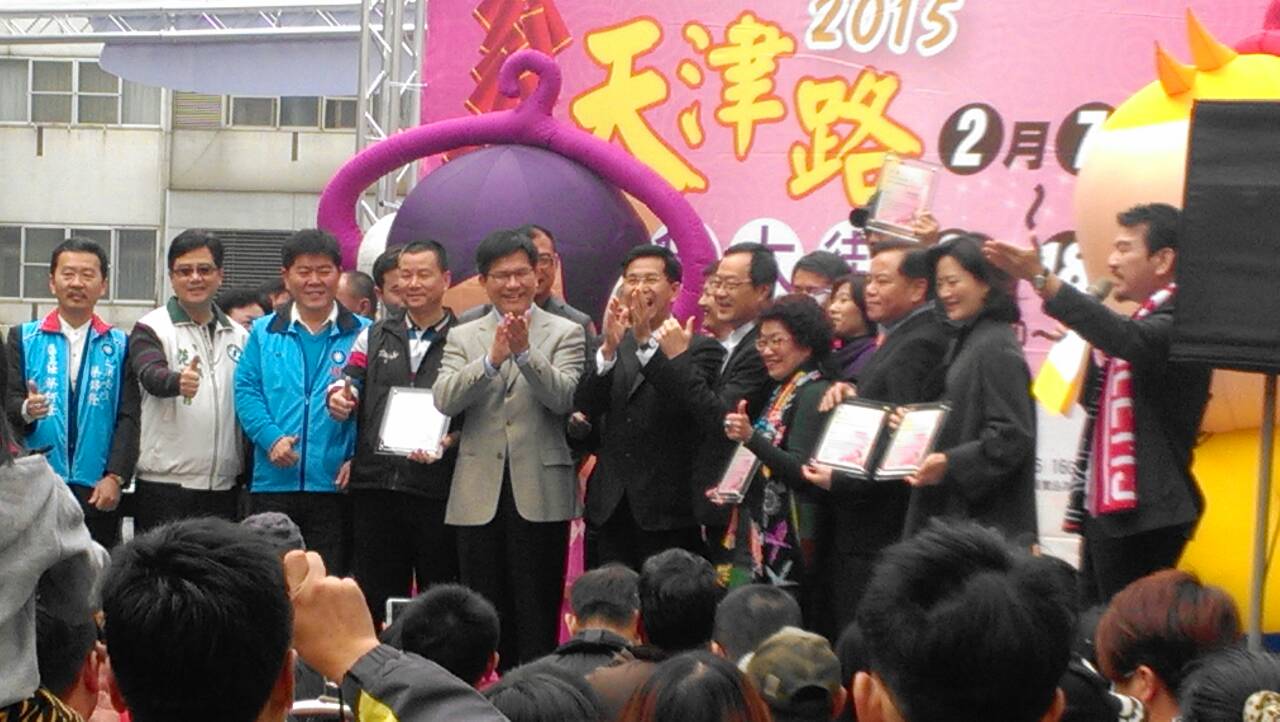 天津路服飾商圈管理委員會自即日起至2月18日舉辦「2015天津路年貨大街」,並於今(7)日上午舉辦開幕儀式,由市長林佳龍、副市長潘文忠等人為活動揭幕。主辦單位今明兩天將發送20萬元購衣券及1000張摸彩券,只要消費滿300元,就有機會將價值約六十萬的TOYOTA VIOS汽車帶回家。
