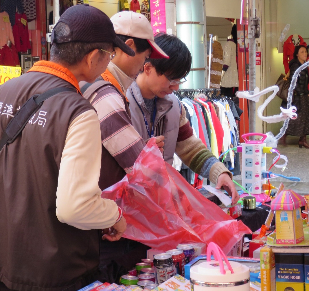 法制局長陳朝建表示,天津路年貨大街較繼光街規模更大、攤商更多,違規情形也較多,在商品標示上仍須再加強,尤其散裝食品的資訊與商品標示的說明應完整,至於,販售醫療器材及應施檢驗商品(如玩具、太陽眼鏡),均應事先取得許可或檢驗認證。