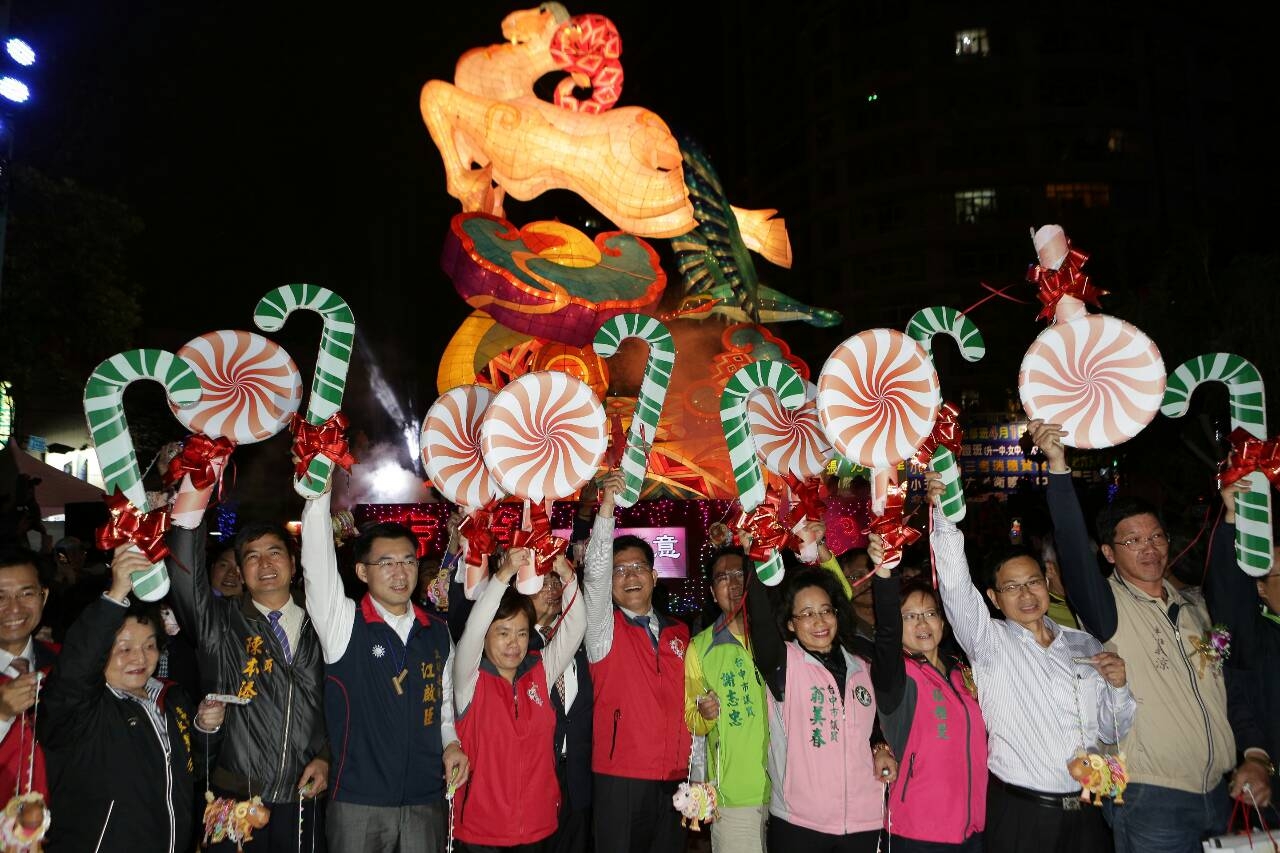 今日台灣燈會率先在豐原開燈,林市長在市府團隊的陪同下前往點燈,13.8米高的主燈,瞬間照亮全場,吉祥物「飛飛」、「揚揚」也現身向大家打招呼;交通部觀光局副局長張錫聰、多位民意代表及區里長也到場共襄盛舉,宣告燈會活動正式展開,並邀請大家呼朋引伴前來臺中遊玩賞燈。