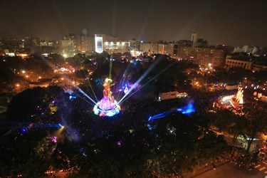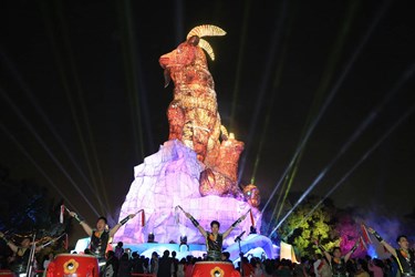 今晚的臺中公園點燈儀式在林市長在擊鼓三響後正式點亮,主燈「吉羊康泰」高20公尺,重達10公噸,點亮瞬間現場閃光燈閃個不停,市府副秘書長郭坤明與市府團隊、立委黃國書、市議員賴佳微、江肇國、范淞育、何敏誠以及多位區長和里長,都到場共同見證這歷史性的一刻。