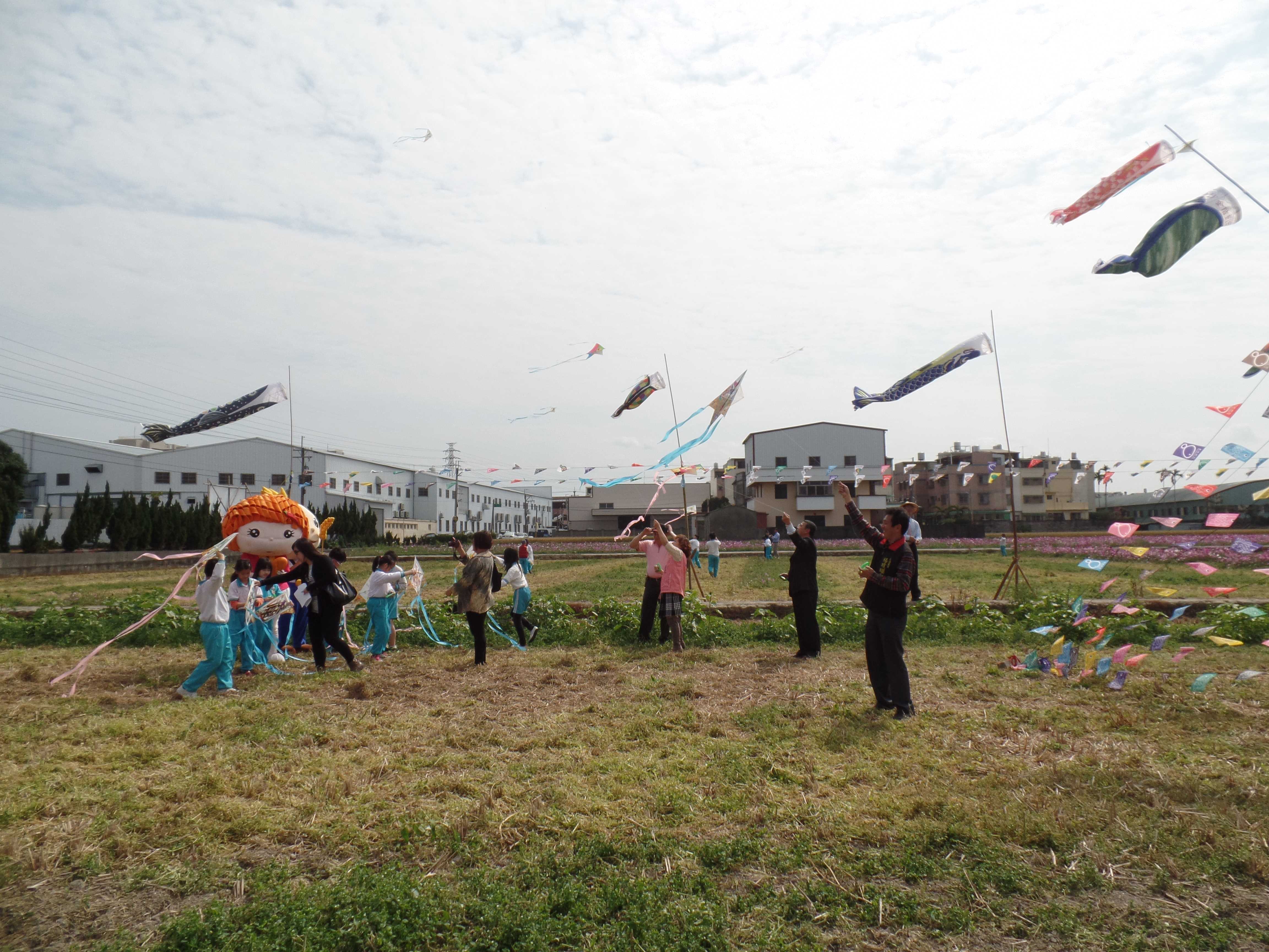 今日活動中小朋友們認真的在紙上彩繪,再轉印到風箏的布上,設計出獨一無二的風箏,現場熱鬧溫馨;大雅區公所表示,今年結合小麥田與「布」產業的特色,將小麥圖騰畫作,飄揚到天空,開放全民打卡來彩繪,一起把美麗的風箏放上天空,祝福大家羊羊得意一整年。