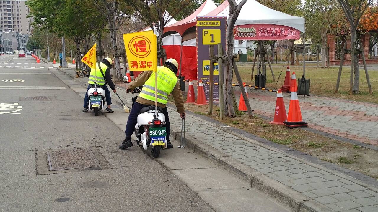 洪局長指出,11日剛成立的「環保騎士隊」以電動機車人力撿拾方式,在烏日燈區南,北轉運站及周邊道路進行清潔作業,每日分別派出5部車,執行成果平均每臺車、每日行駛25公里,所清理的垃圾總量平均為每日60公斤。