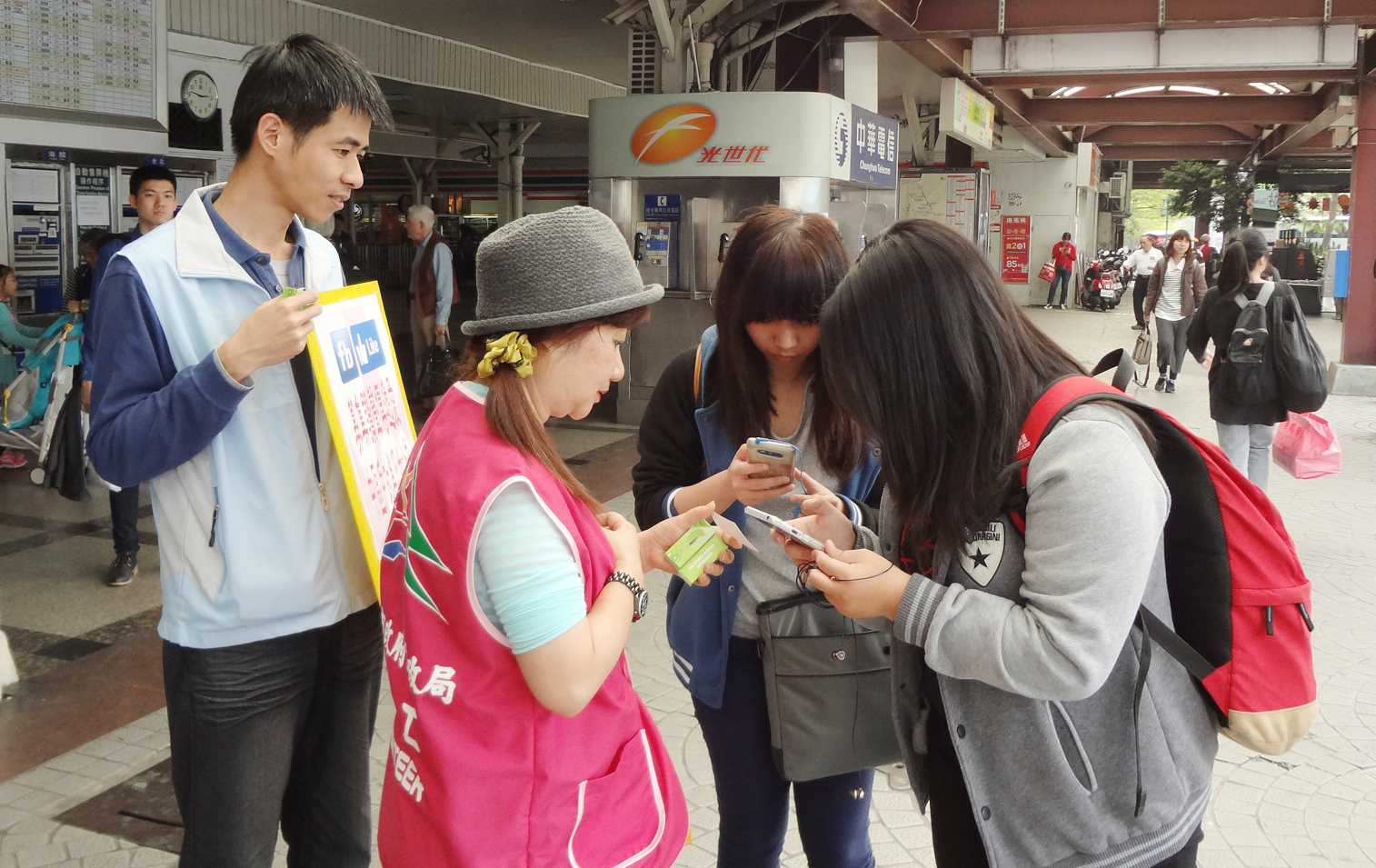 中區戶政事務所主任白峨嵋與同仁今(13)日下午前往臺中火車站,向往來旅客募集「讚聲」,民眾只要在「臺中市中區戶政事務所」臉書粉絲團(https://www.facebook.com/hcentral.taichung),並將活動分享至個人臉書的畫面截圖下來,傳至81000@taichung.gov.tw 電子信箱並留下聯絡資訊,即可參加3月底的抽獎活動。
