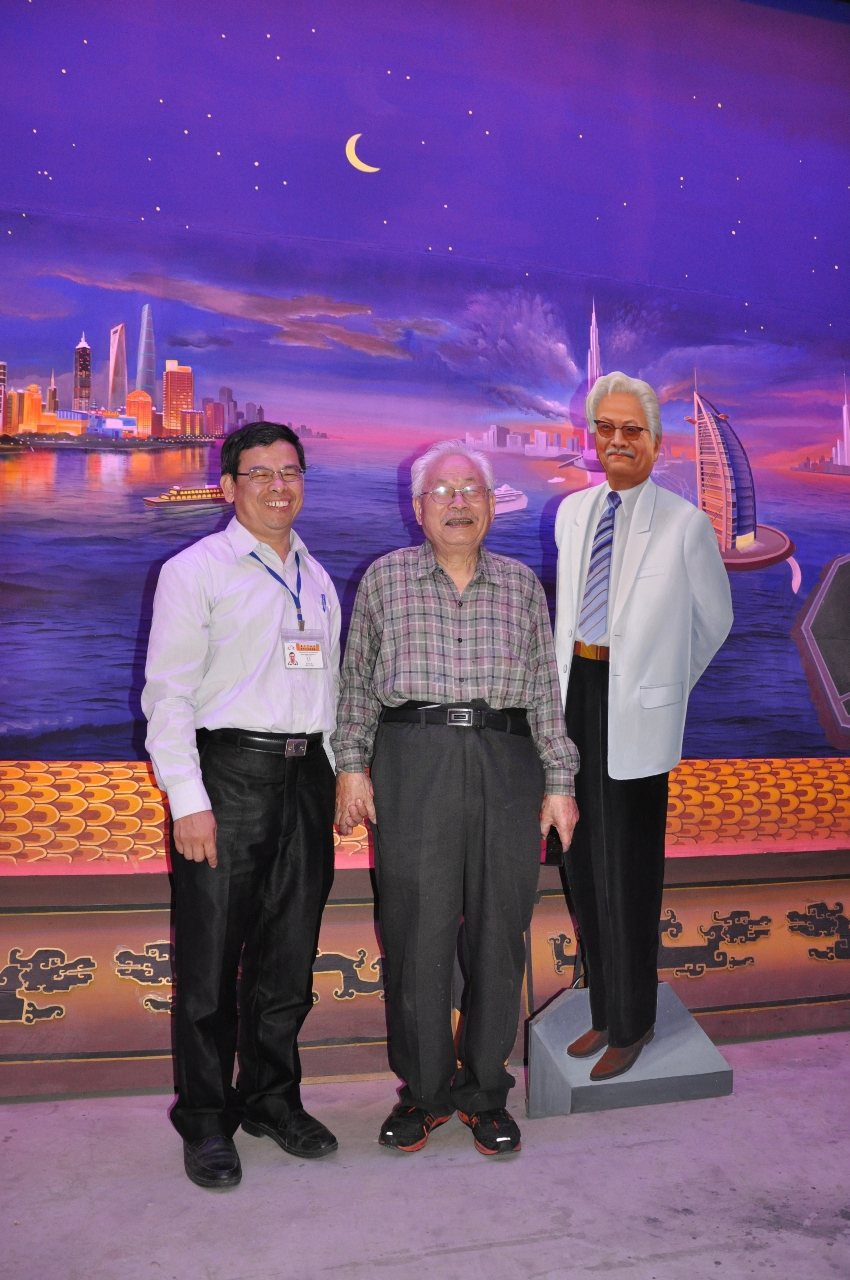 侯壽峰今(18)日在臺中市文化資產處所辦的記者會中,利用現有的樓層空間重現戲臺布景彩繪現場,並示範俗稱「機關變景」的8秒鐘變換布景,技術精湛,展現他對這項技藝的投入與用心。