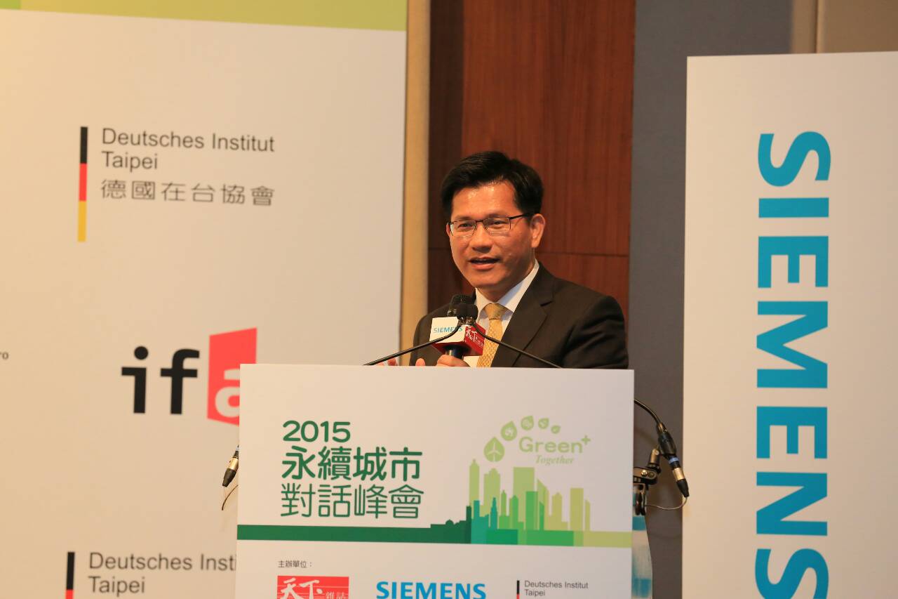 「Green+Together永續城市對話峰會」(2015 City-to-City Sustainability Dialogues)由台灣西門子(Siemens)與德國在台協會、台灣永續能源研究基金會、德國經濟辦事處共同舉辦,邀請以治理綠色低碳城市著稱的德國杜賓根市市長帕爾默(Boris Palmer)、臺中市長林佳龍、臺北市長柯文哲、桃園市長鄭文燦共同對談,分享城市永續發展思維與作法。