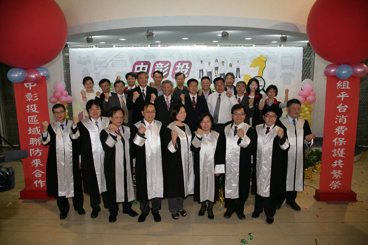 「中彰投消保聯合律師團成立記者會」今天在彰化縣政府舉辦,由臺中市張副市長、彰化縣縣長魏明谷、副縣長周志中、南投縣副縣長陳正昇、行政院消費者保護處處長劉清芳與聯合律師團9位律師等人一起參加律師團成立啟動儀式,象徵開創中臺灣維護消費者權益「跨域、聯防」的新合作機制。