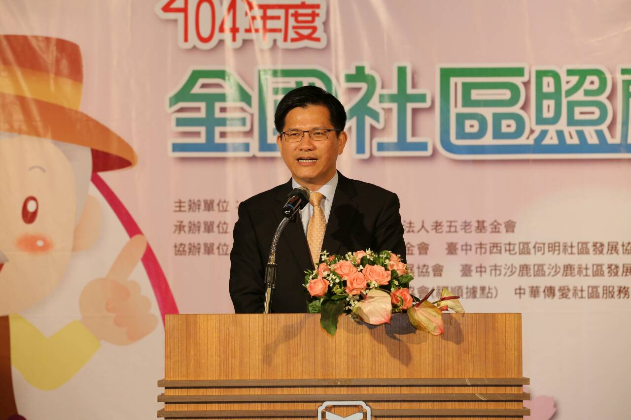 來自全國各縣市政府及全國社區照顧關懷據點代表約200位今日齊聚一堂,互相分享經驗互相學習;林市長也表達感謝之意,因為有大家的努力,讓社會充滿愛與溫暖。他說,十多年前他在行政院服務時,當時開始推動社照關懷據點,成效非常好,各處據點如雨後春筍蓬勃發展,期盼透過今日交流,讓臺中及全國的關懷據點皆能質量兼顧。