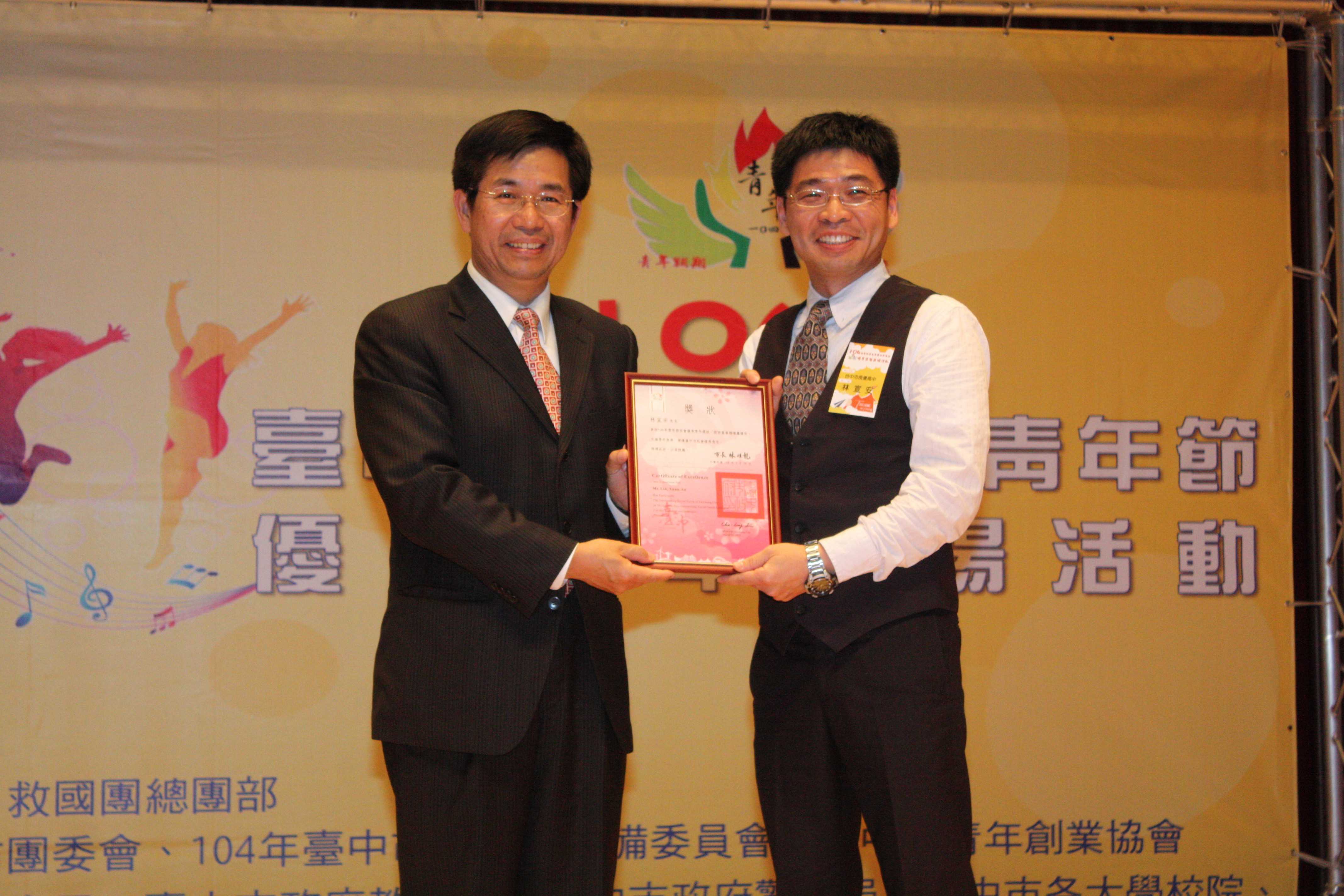 潘副市長、市府社會局副局長陳坤皇、台中市救國團主任委員楊頭雄等人今日都出席臺灣大道市政大樓舉行的青年節優秀青年頒獎典禮,學生帶來的精采表演,大會司儀群都是由臺中市各校推舉出「104年青年節籌備委員會」優秀學生擔任,現場洋溢著濃濃的青春氣息。