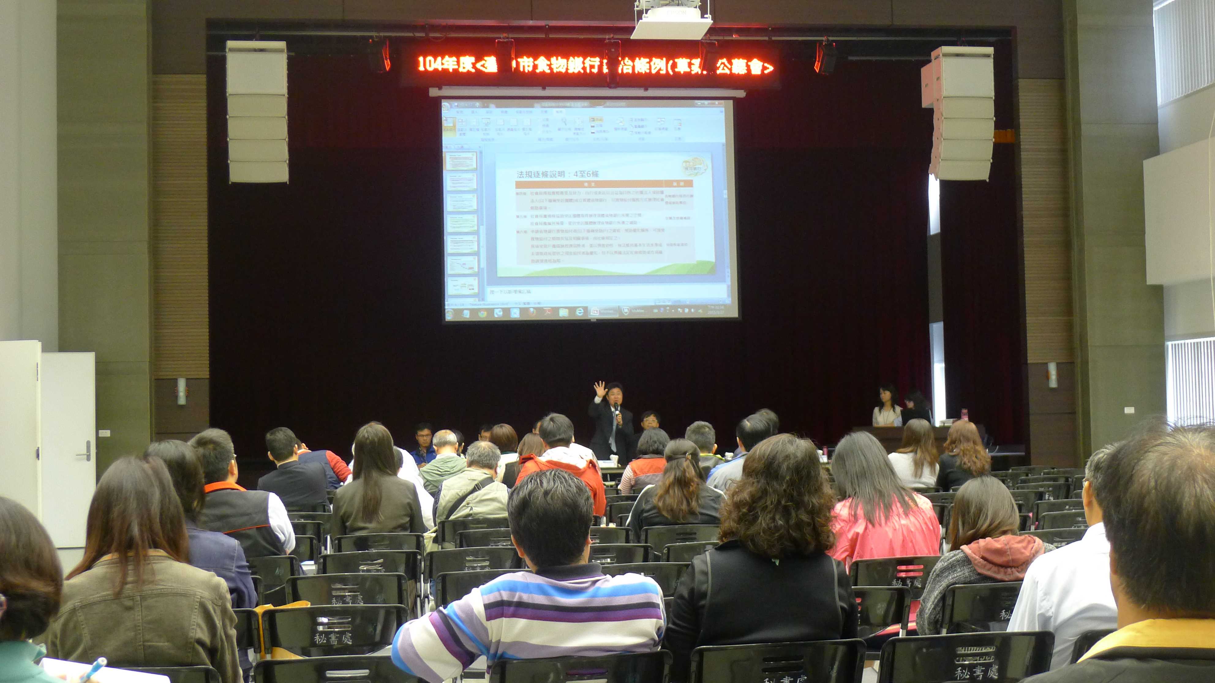 呂局長表示,自治條例清楚規劃市府各局處如何互相協助食物銀行建立,農業局負責收購過生農產品並提供有機食材,經濟發展局收集公有零售市場當天賣完剩餘食物,衛生局負責食品安全檢測,地稅局辦理捐贈物資減稅,教育局推動食物銀行日等。