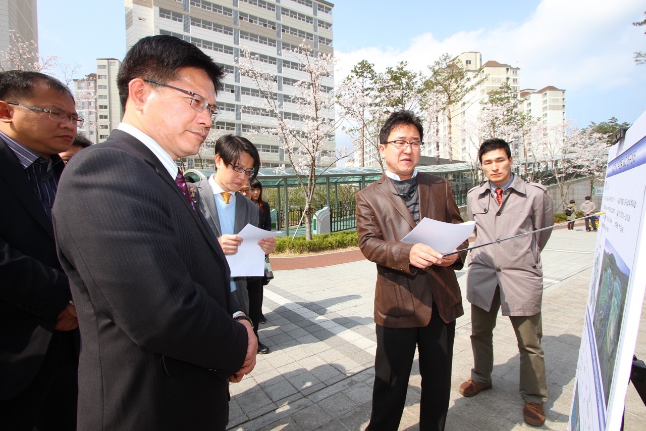 林市長一行人今(8)日前往首爾近郊的牛眠山地區,參觀當地頗具規模的社會住宅,受到首爾市住宅公社(Seoul Housing, SH)次長高在泳等人的歡迎。高次長簡報中指出,牛眠山地區已興建3137戶社會住宅,其中2232戶採租賃,905戶則為出售。附近有運動、休閒、學校等公共設施,加上交通便利,相當搶手。也因此,三星R&D部門已進駐此地,興建辦公大樓及供員工居住為主的平價住宅。